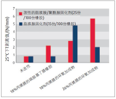 圖8 加入端氨基丁腈橡膠或環(huán)氧加成物的雙組分胺固化環(huán)氧膠黏劑的增韌性