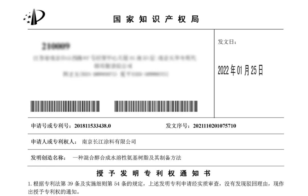 專利丨長江涂料新獲兩項(xiàng)發(fā)明專利授權(quán)