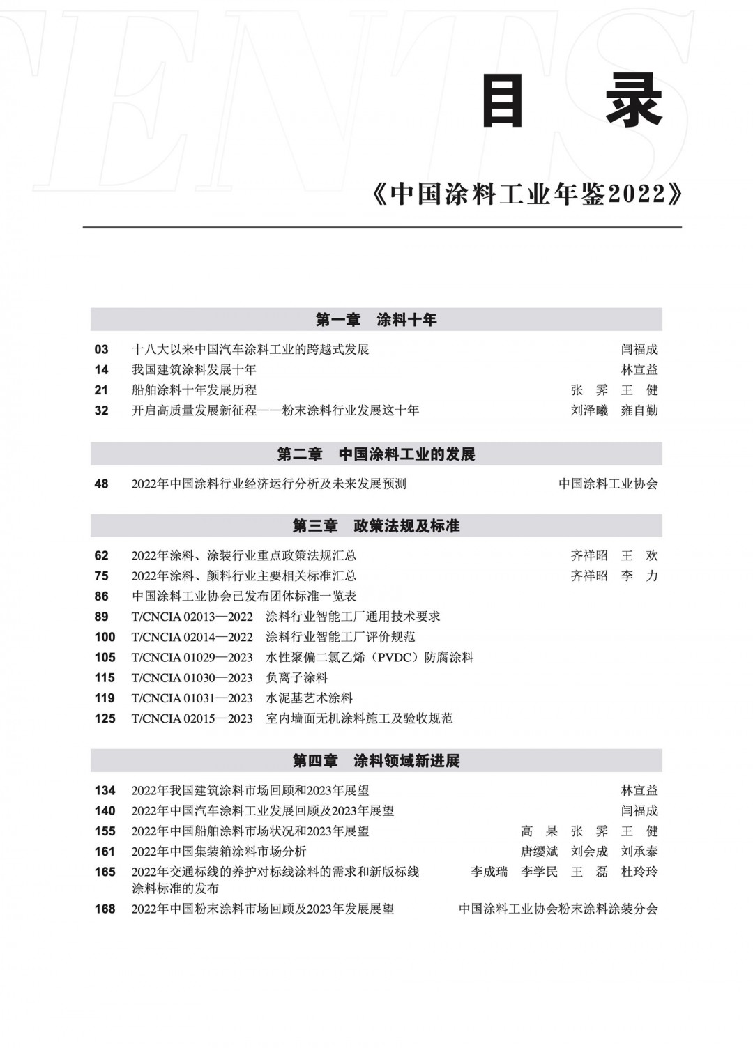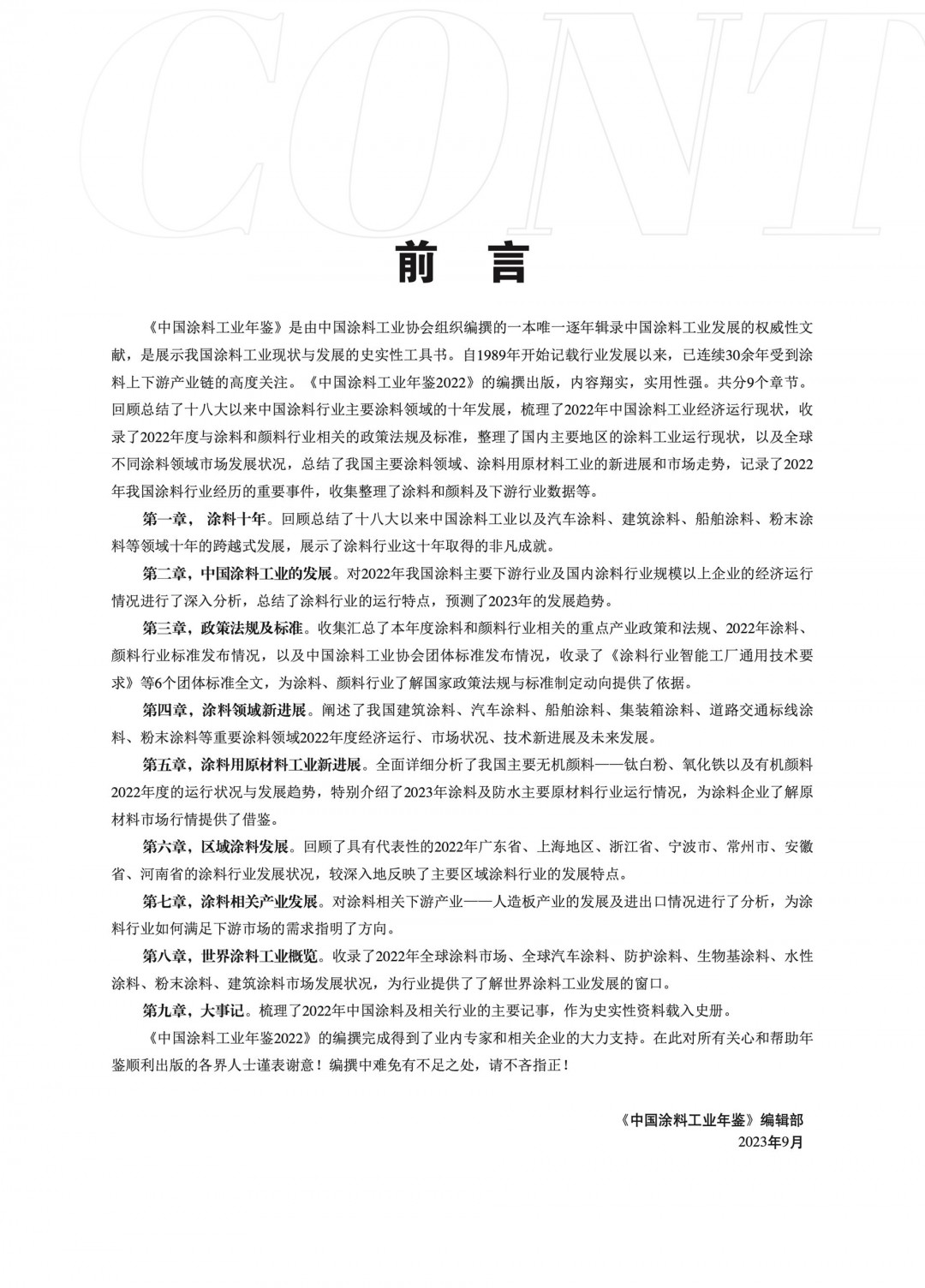 《中國涂料工業(yè)年鑒》是由中國涂料工業(yè)協(xié)會(huì)組織編撰的一本唯一逐年輯錄中國涂料工業(yè)發(fā)展的權(quán)威性文獻(xiàn),是展示我國涂料工業(yè)現(xiàn)狀與發(fā)展的史實(shí)性工具書。自1989年開始記載行業(yè)發(fā)展以來,已連續(xù)30余年受到涂料上下游產(chǎn)業(yè)鏈的高度關(guān)注。