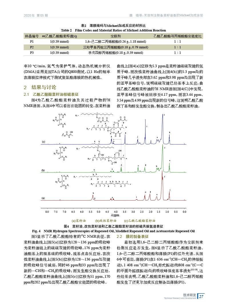 無溶劑法制備菜籽油基的Michael加成涂層