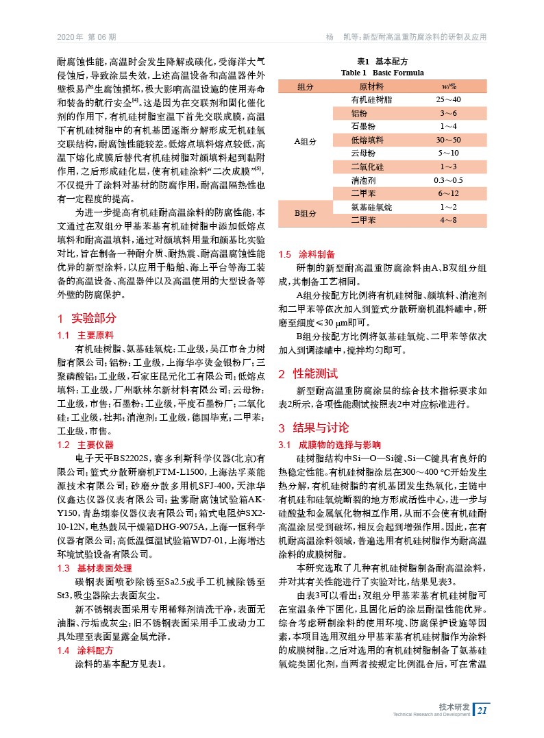 新型耐高溫重防腐涂料的研制及應(yīng)用