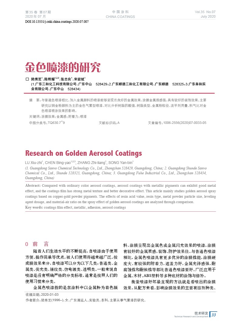 本文系作者@陸秀芝,陳炳耀,張志良,宋巖斌 授權中國涂料網發表,并經中國涂料網編輯,未經允許不得轉載,如需轉載請聯系chinacoatingnet@vip.163.com