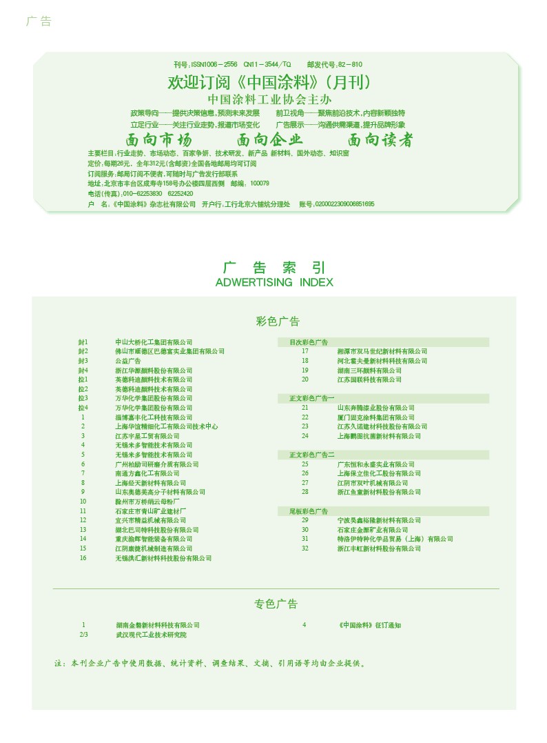 主辦:《中國涂料》雜志社有限公司 電話:010-62252368
