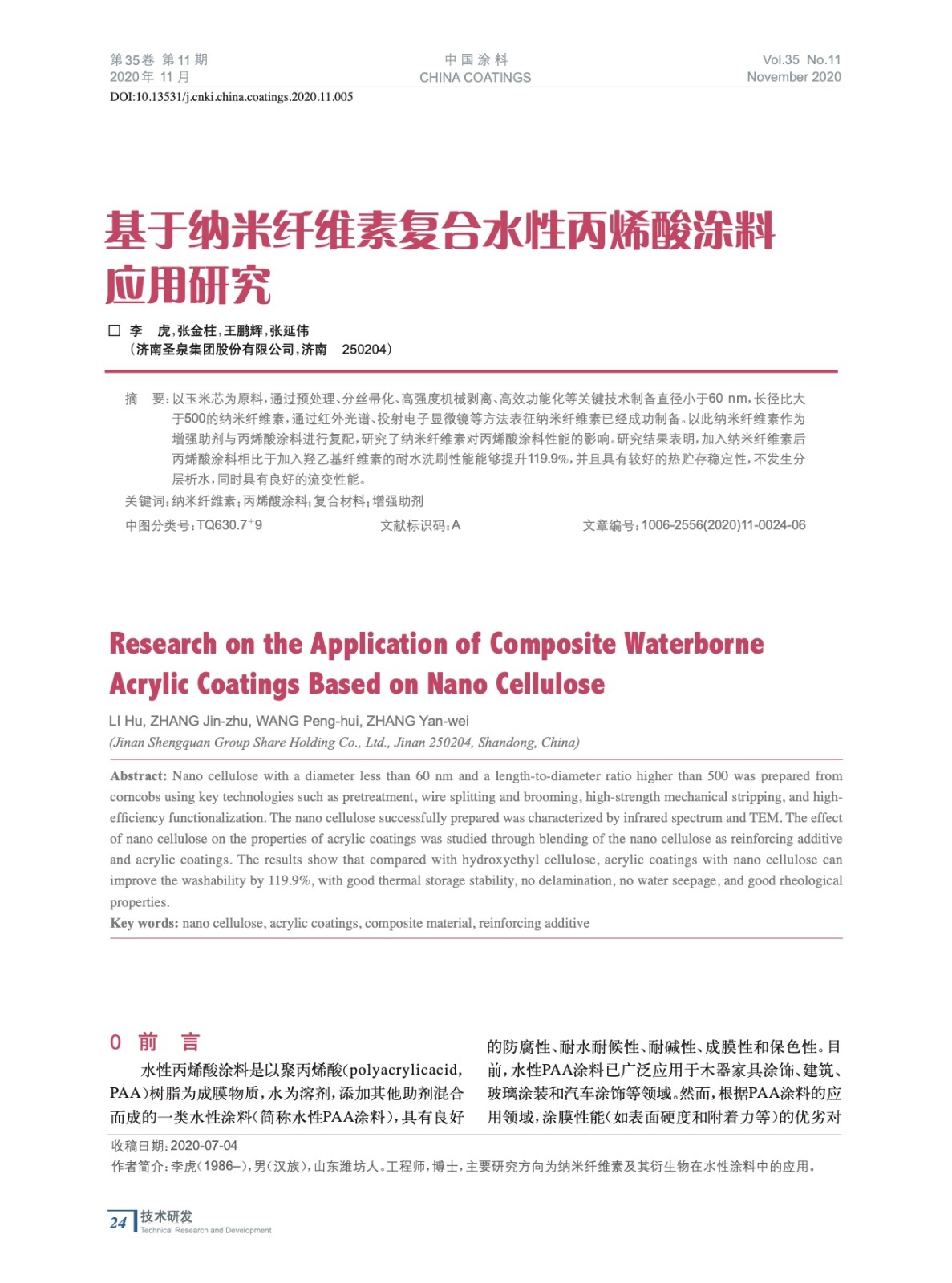 基于納米纖維素復(fù)合水性丙烯酸涂料應(yīng)用研究