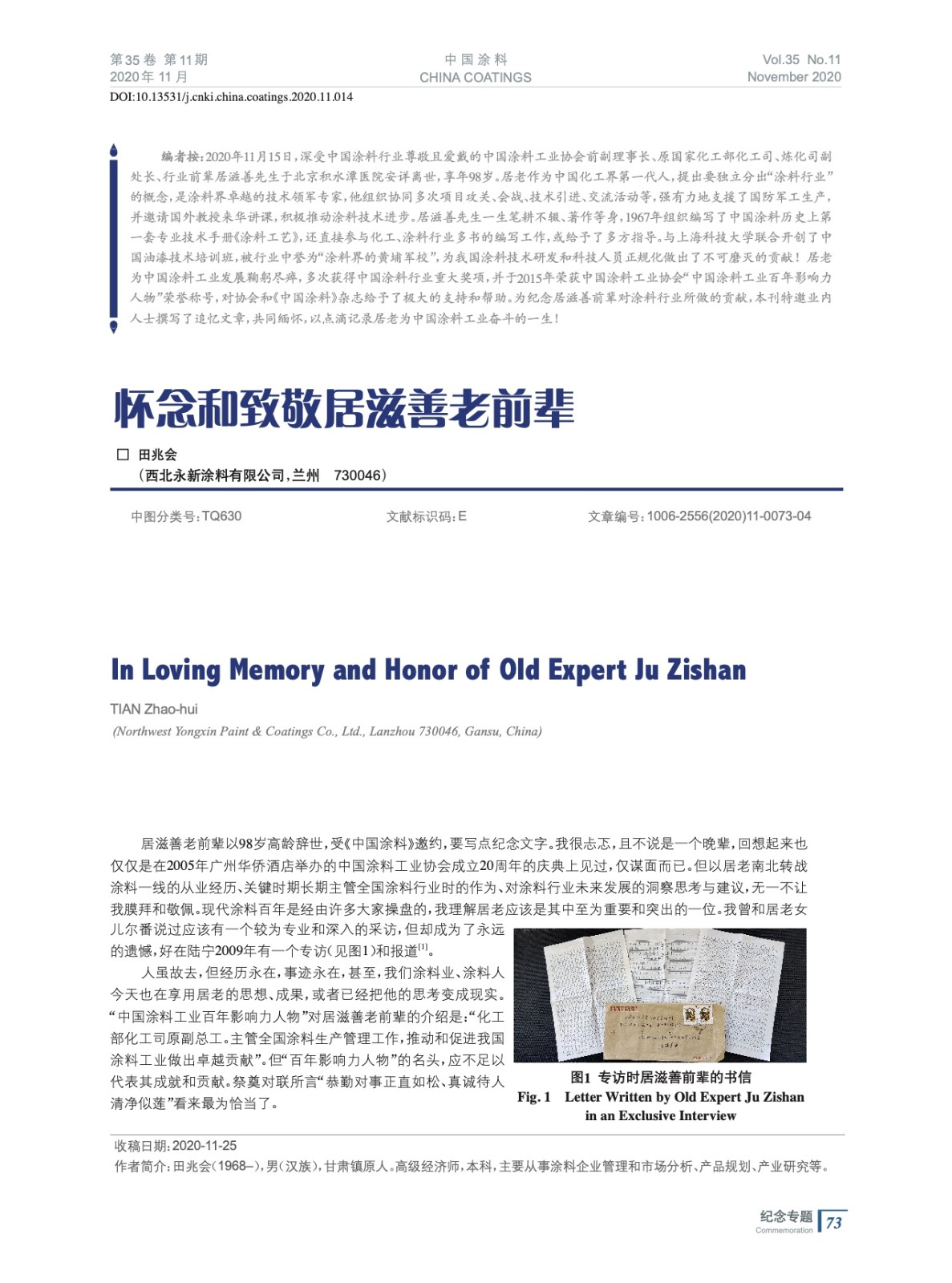 編者按:2020年11月15日,深受中國涂料行業尊敬且愛戴的中國涂料工業協會前副理事長、原國家化工部化工司、煉化司副處長、行業前輩居滋善先生于北京積水潭醫院安詳離世,享年98歲。為紀念居滋善前輩對涂料行業所做的貢獻,本刊特邀業內人士撰寫了追憶文章,共同緬懷,以點滴記錄居老為中國涂料工業奮斗的一生!