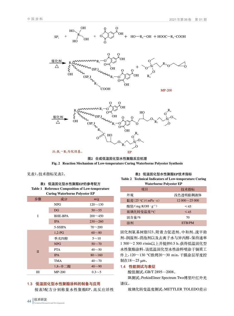 低溫固化型水性聚酯的合成及其水性烤漆應用