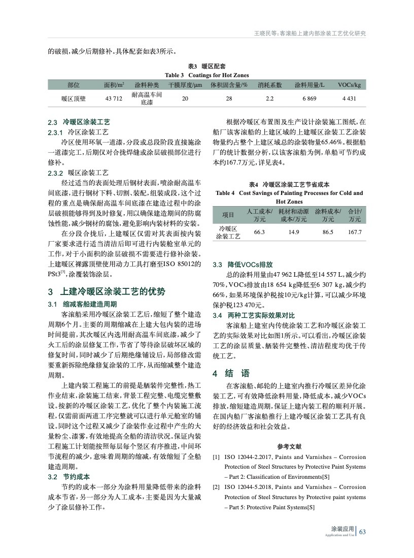 摘要:主要通過探索客滾船上建腐蝕環(huán)境分類,上建冷暖區(qū)劃分,推行冷暖區(qū)涂裝工藝,從而縮短上建內(nèi)裝工程建造周期,降低涂料成本,減少VOCs排放。