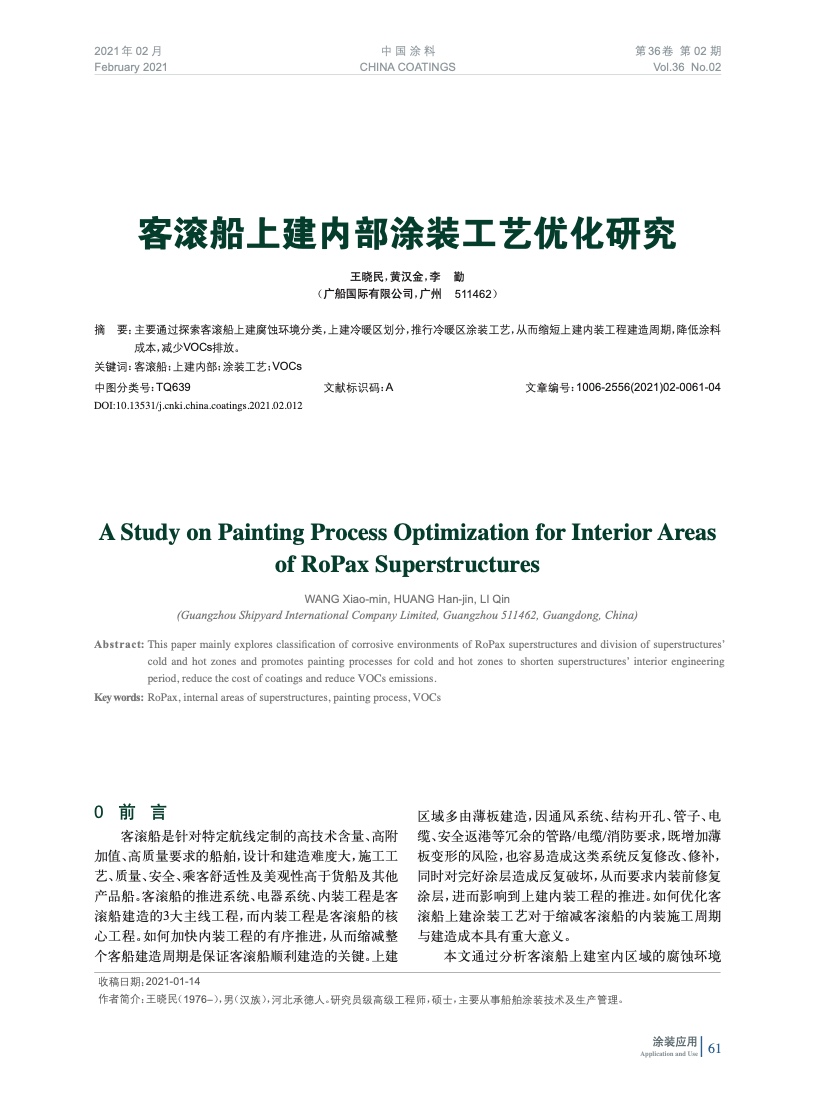 客滾船上建內(nèi)部涂裝工藝優(yōu)化研究