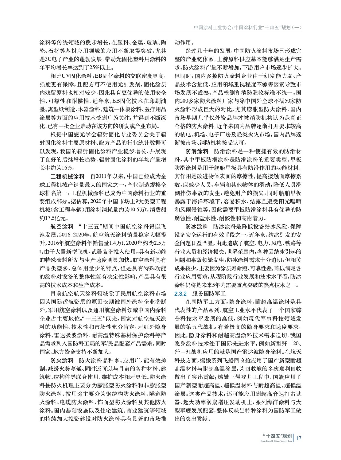 摘要:編者按:2021年3月24日,《中國涂料行業“十四五”規劃》于“2021中國國際涂料大會”期間正式發布,為中國涂料行業未來5年的發展擘畫了目標和方向。為了使涂料行業及相關領域及時深入了解《中國涂料行業“十四五”規劃》的精髓和全貌,本刊將從本期開始全文刊登,并分別解讀重點領域的“十四五”發展規劃,以饗讀者。