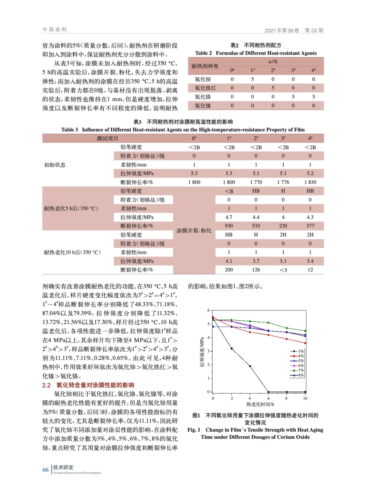 摘要:以甲基乙烯基硅橡膠為基體樹脂,結(jié)合納米補(bǔ)強(qiáng)填料、耐熱劑、顏填料及助劑等,制備了一種耐高溫、高彈、高強(qiáng)涂層。研究了不同耐熱劑及用量對涂膜耐熱老化性能的影響。結(jié)果表明:納米氧化鈰、氧化鐵紅、氧化鉻及氧化鎳均具有提高涂膜耐熱穩(wěn)定性的作用;當(dāng)涂層中耐熱劑為4%納米氧化鈰復(fù)配1%氧化鉻及2%氧化鎳時(shí),耐熱劑協(xié)同作用,使得涂膜熱老化后仍然具有1 067%的斷裂伸長率及4.8 MPa的拉伸強(qiáng)度。