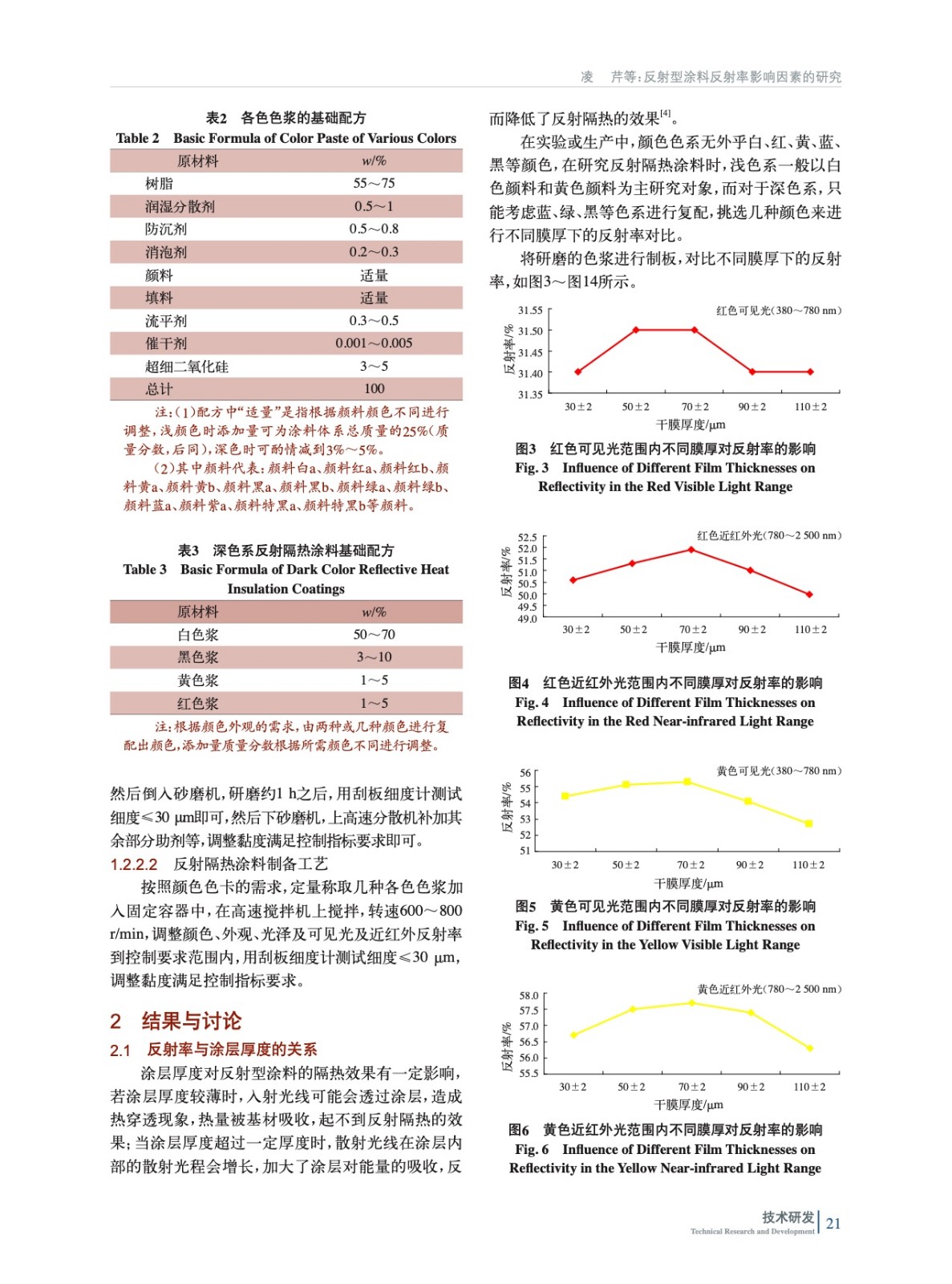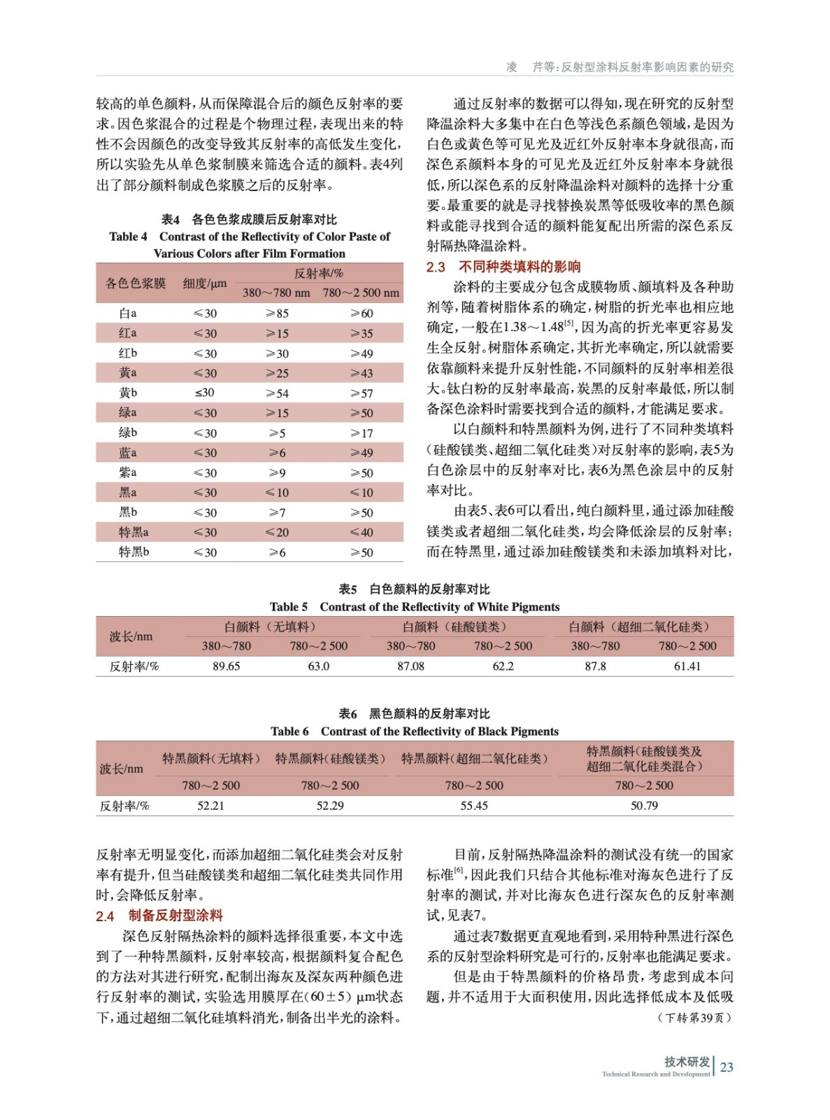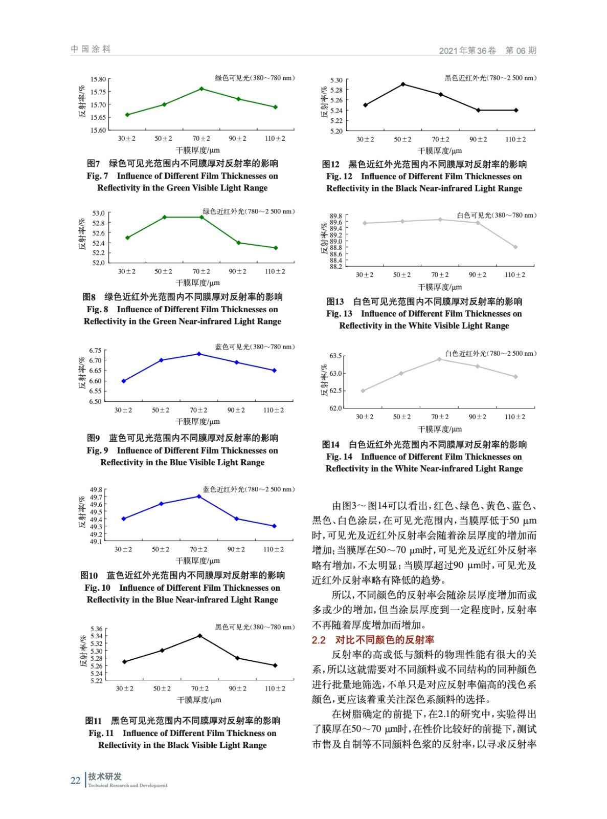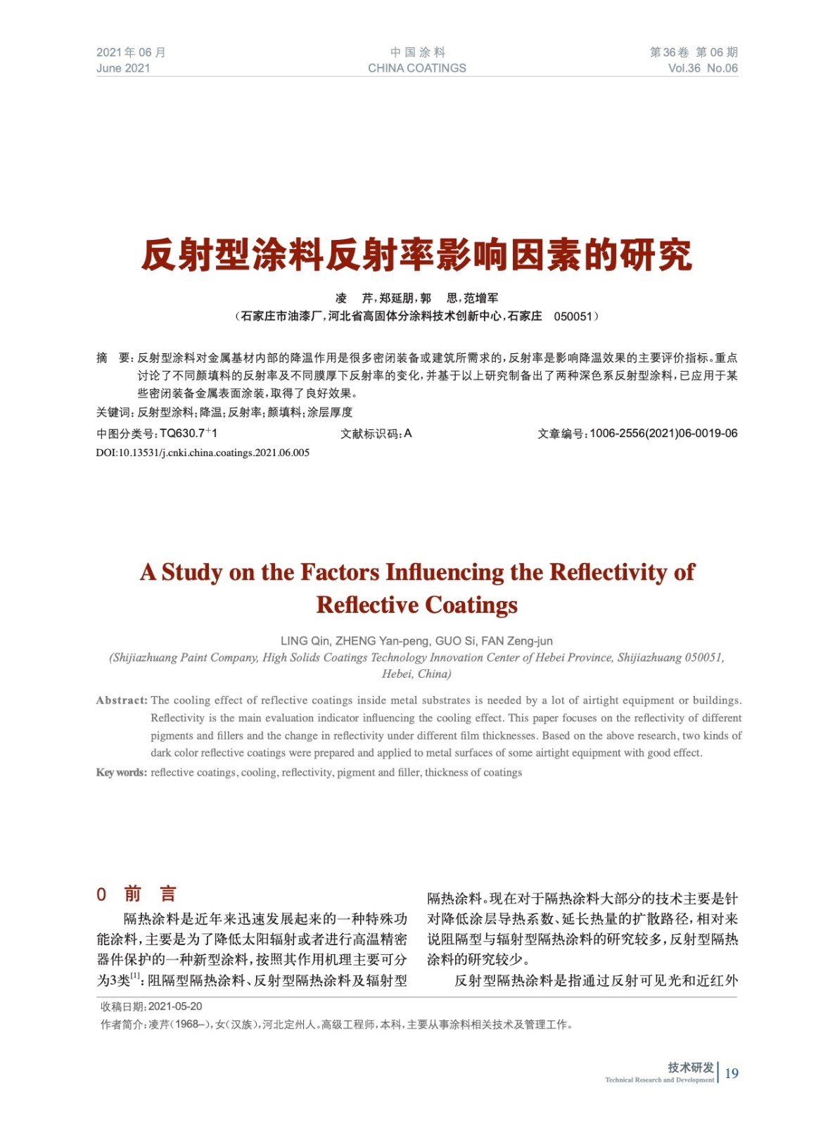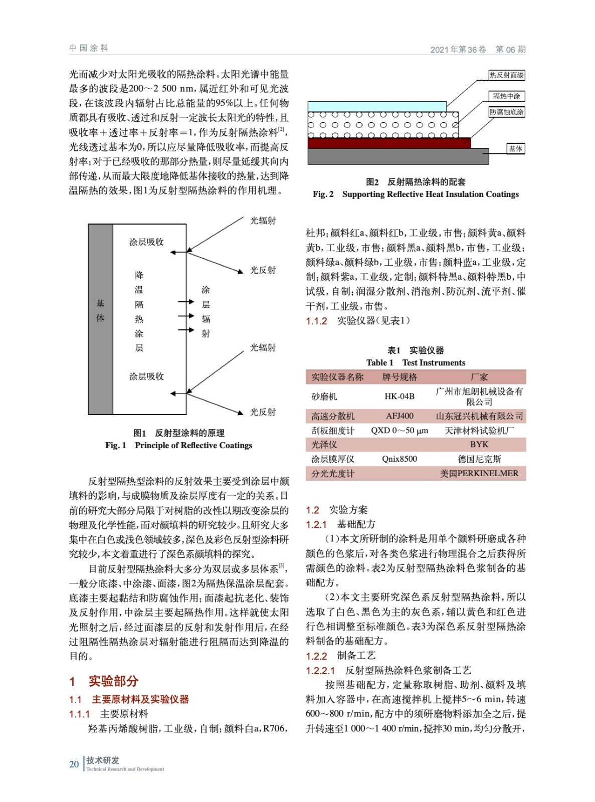 摘要:反射型涂料對金屬基材內部的降溫作用是很多密閉裝備或建筑所需求的,反射率是影響降溫效果的主要評價指標。重點討論了不同顏填料的反射率及不同膜厚下反射率的變化,并基于以上研究制備出了兩種深色系反射型涂料,已應用于某些密閉裝備金屬表面涂裝,取得了良好效果。