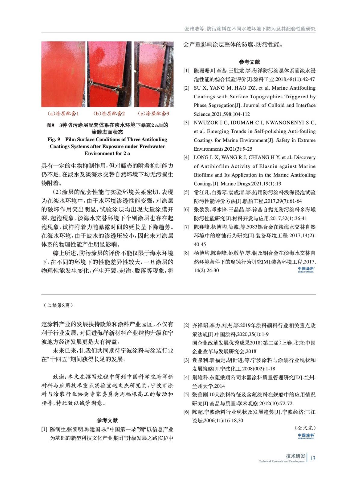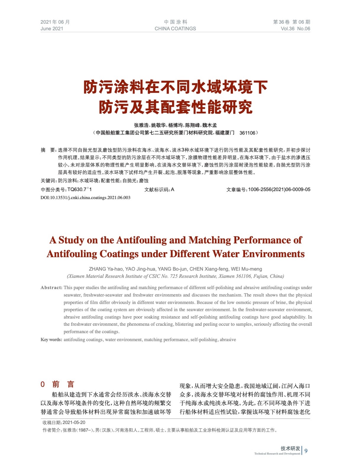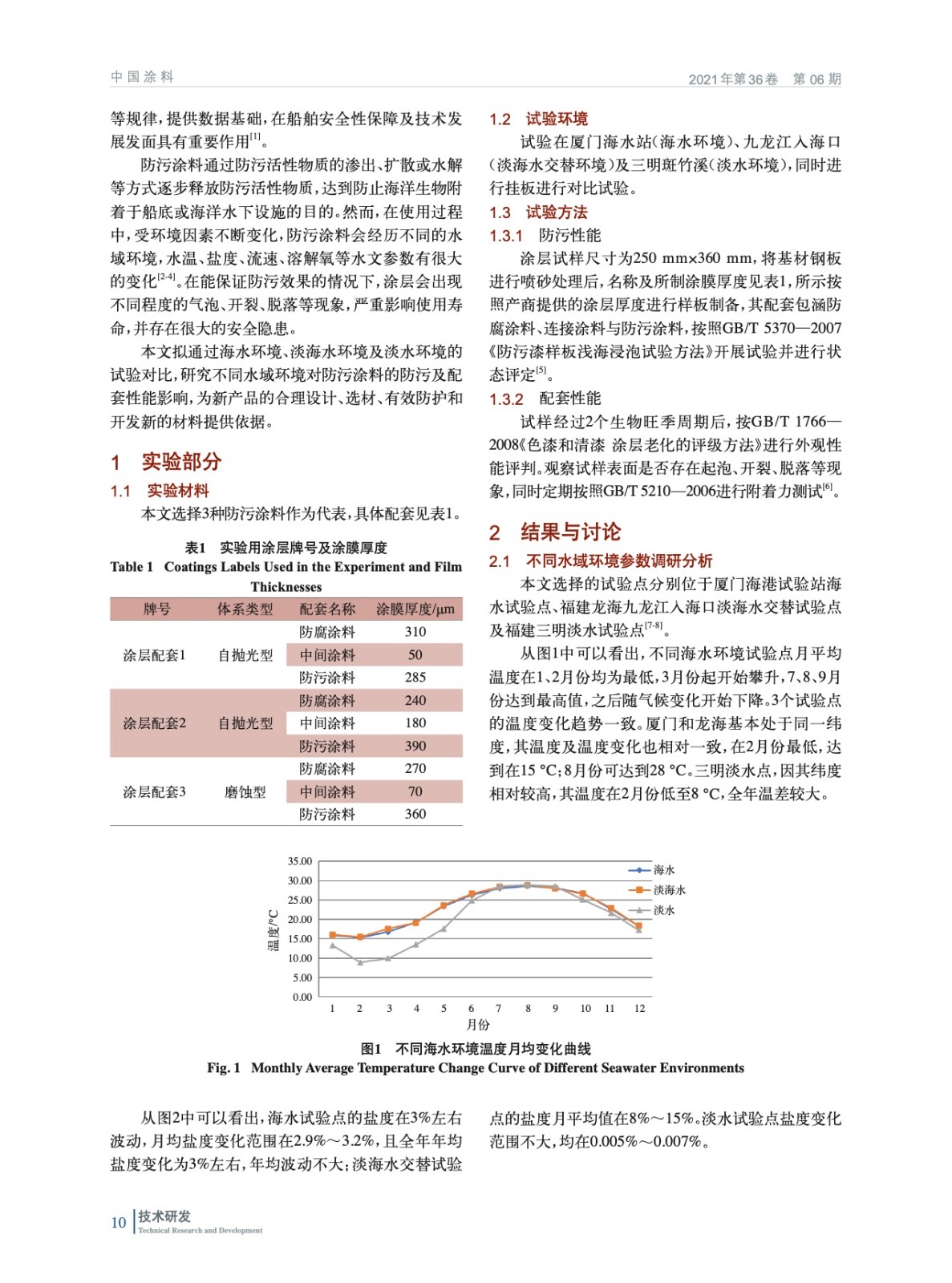 防污涂料在不同水域壞境下防污及其配套性能研究