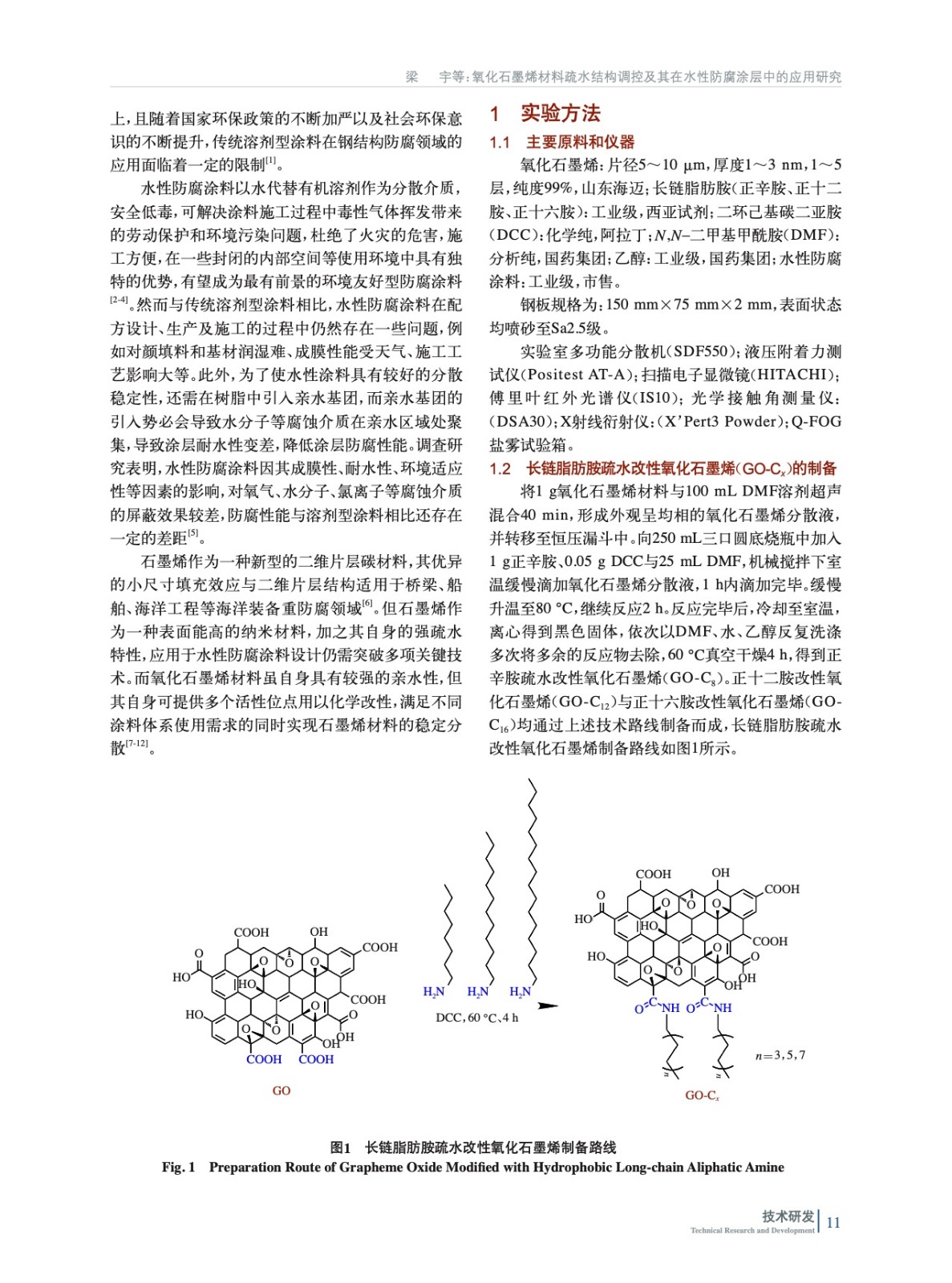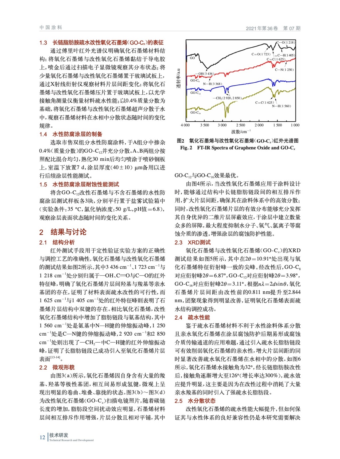 氧化石墨烯材料疏水結(jié)構(gòu)調(diào)控及其在水性防腐涂層中的應(yīng)用研究