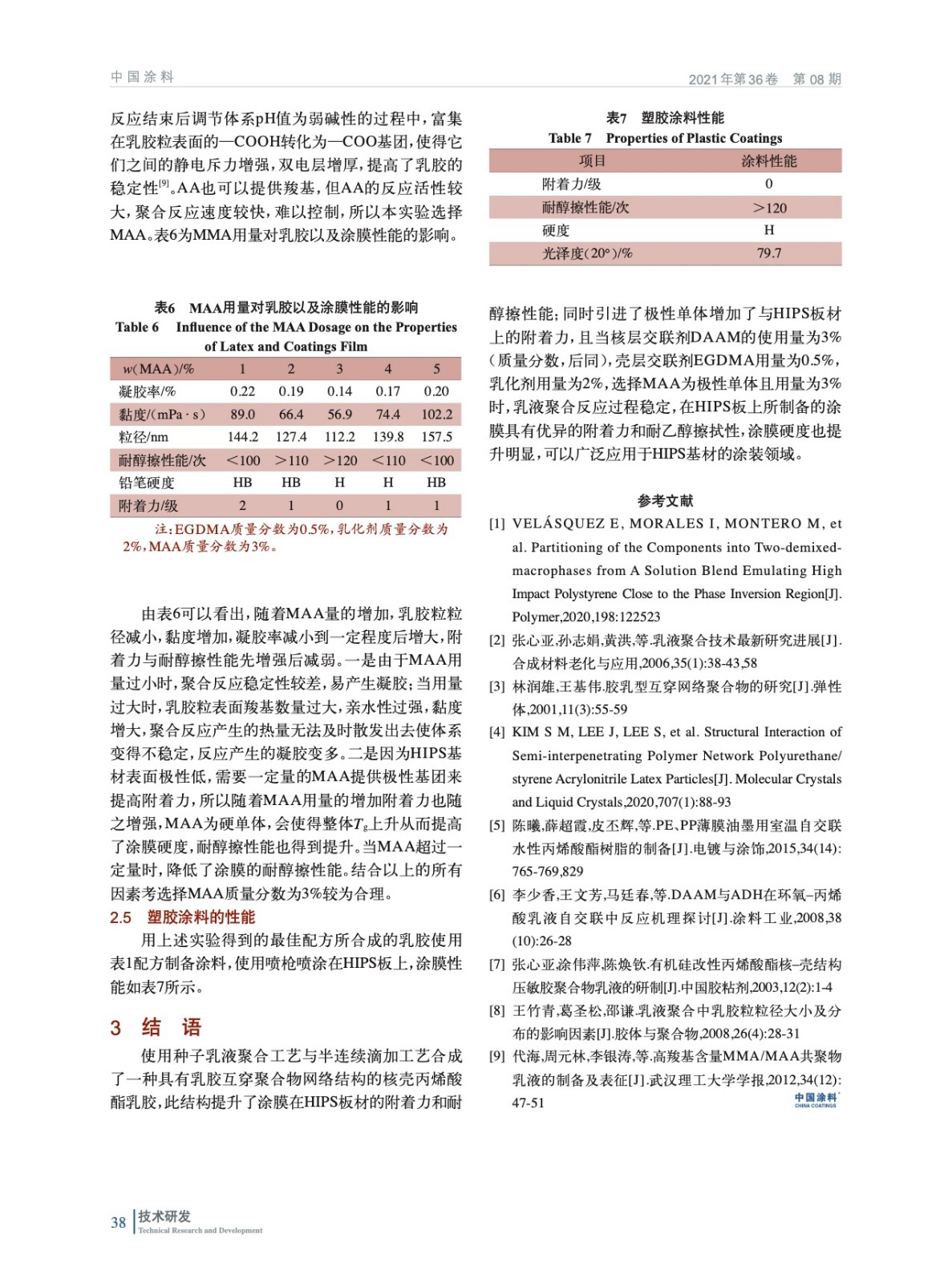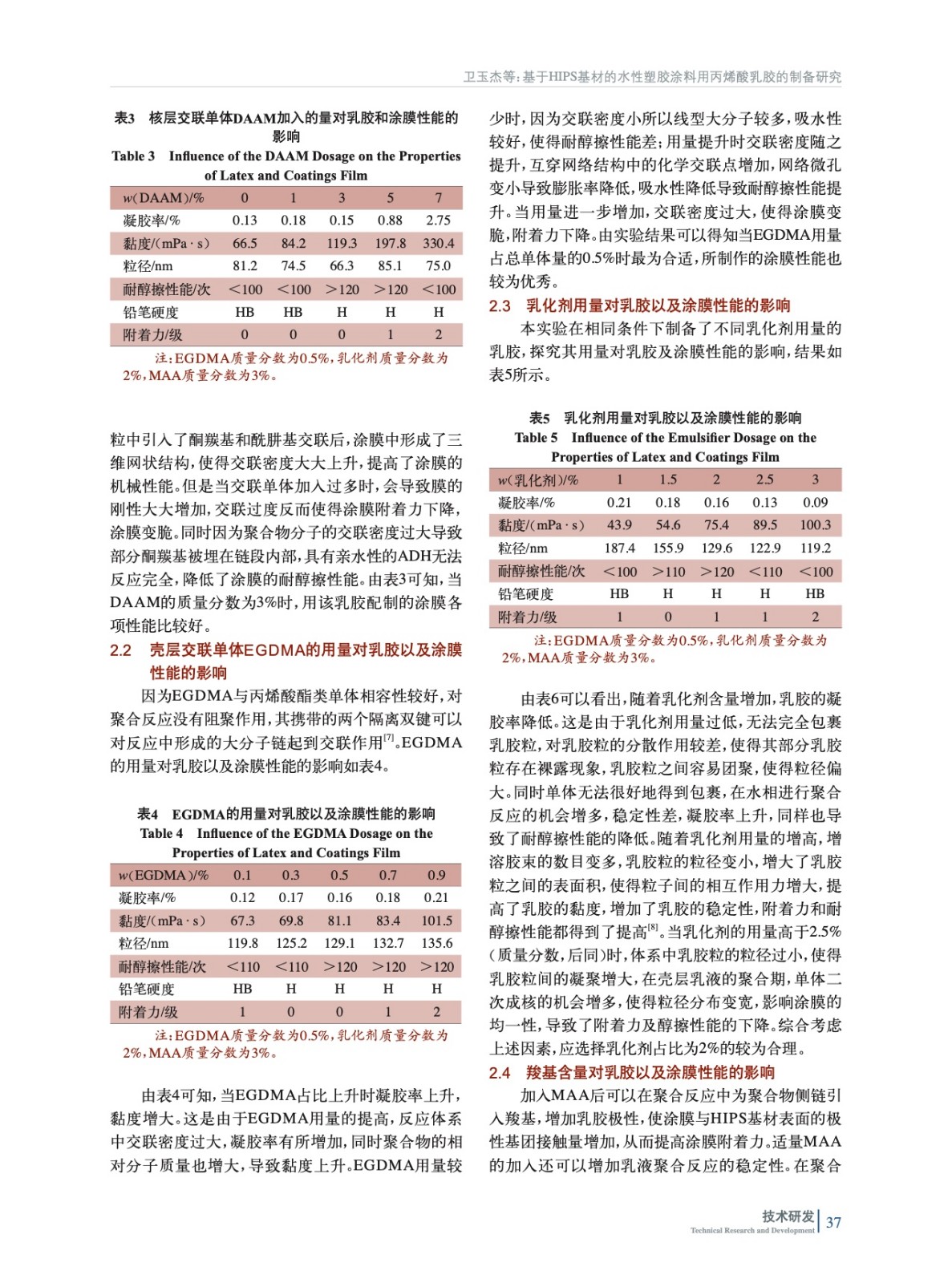 基于HIPS基材的水性塑膠涂料用丙烯酸乳膠的制備研究