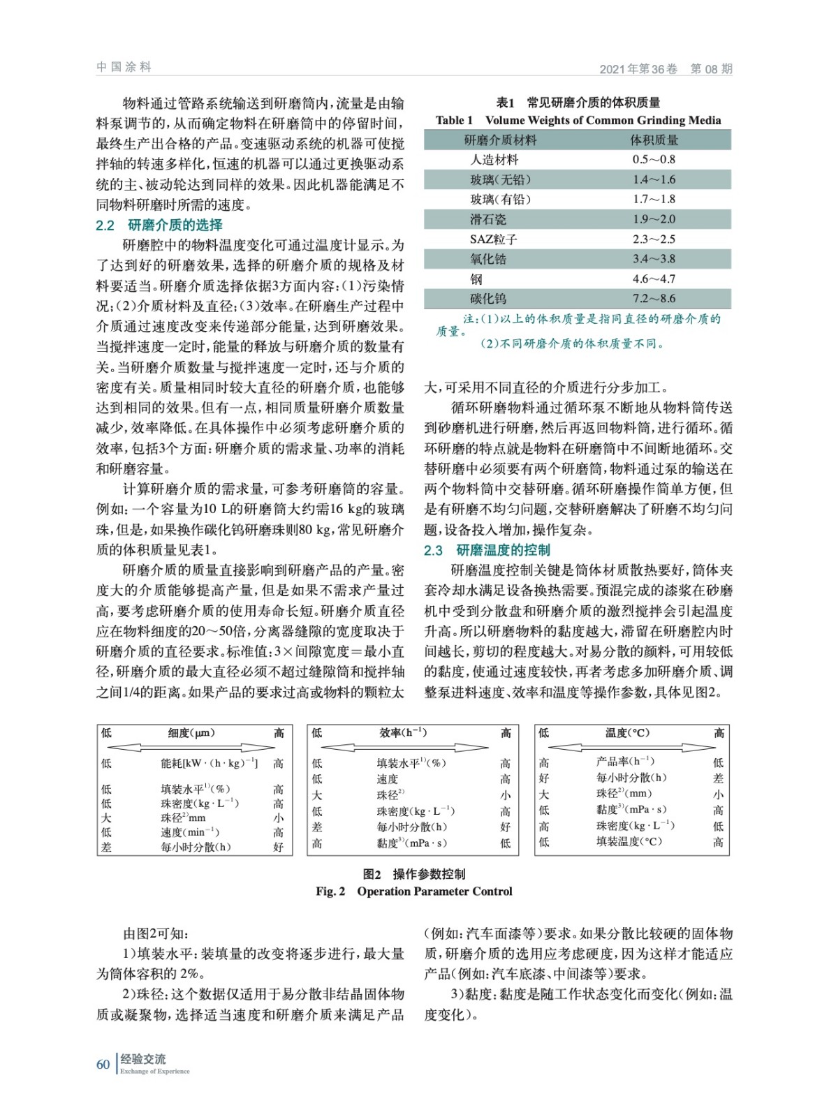 摘要:通過對汽車涂料生產過程中的關鍵設備——臥式砂磨機工作原理的研究,通過采用不同研磨工藝,在確保產品細度和外觀質量、研磨遍數不超過工藝要求的前提下,通過考察不同研磨介質充填量、調整物料不同進料壓力、可變出料等因素對砂磨機研磨效率的影響,指出常見問題的排查內容,結合數據分析以尋求出較為合理的設備工藝參數,制定臥式砂磨機生產操作工藝規程,有效保證汽車涂料在生產研磨分散過程中其綜合性能達到配方設計要求。