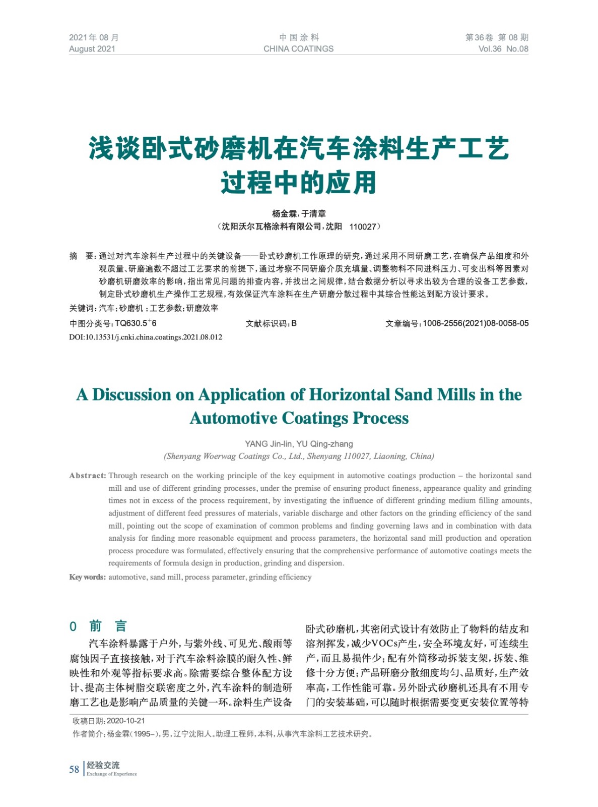 淺談臥式砂磨機在汽車涂料生產工藝過程中的應用