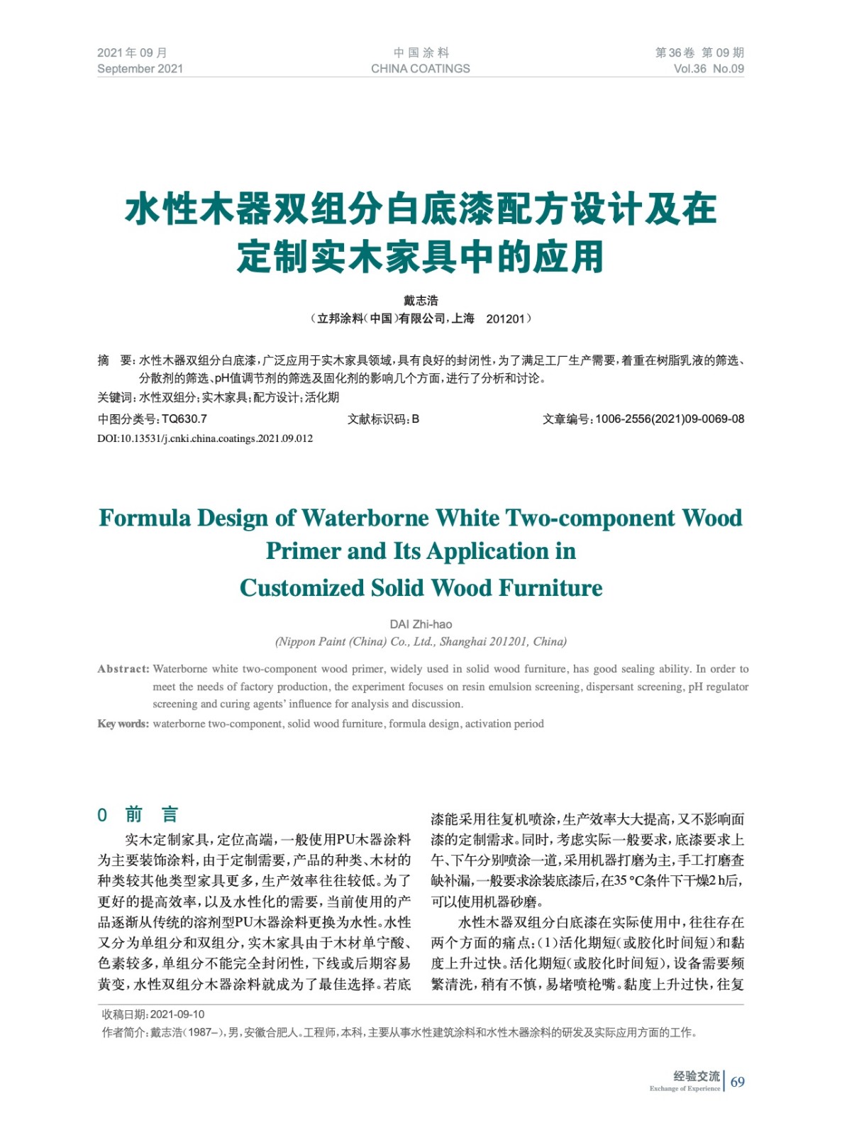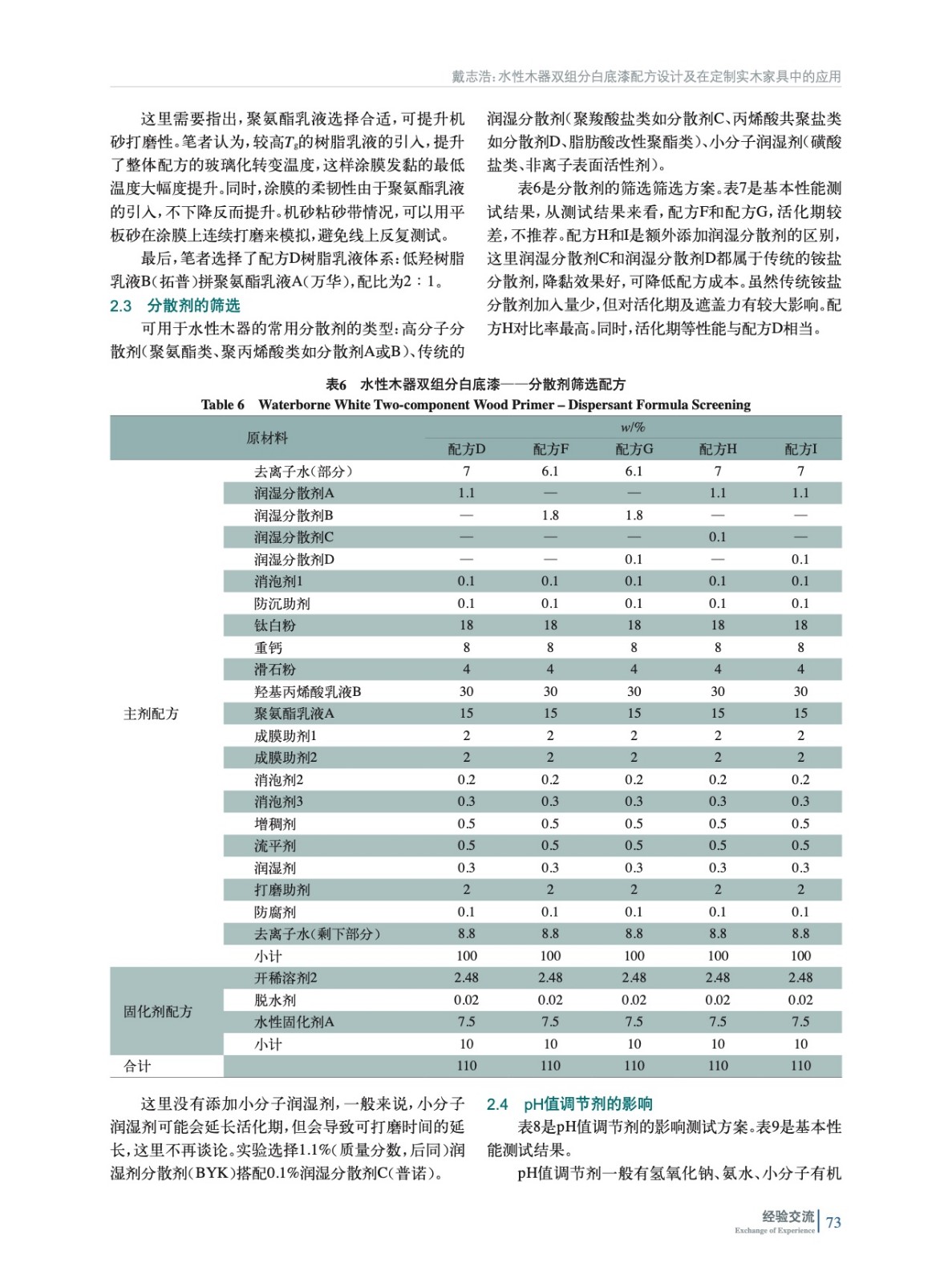水性木器雙組分白底漆配方設計及在定制實木家具中的應用