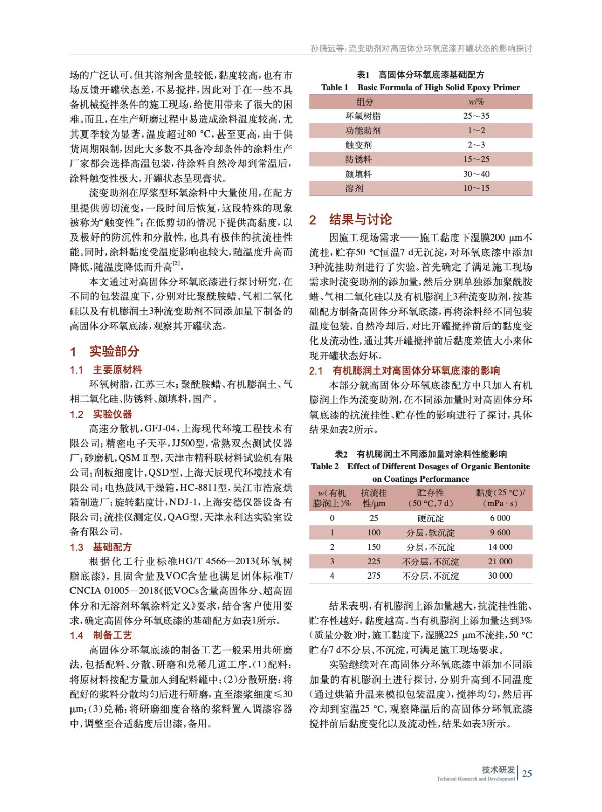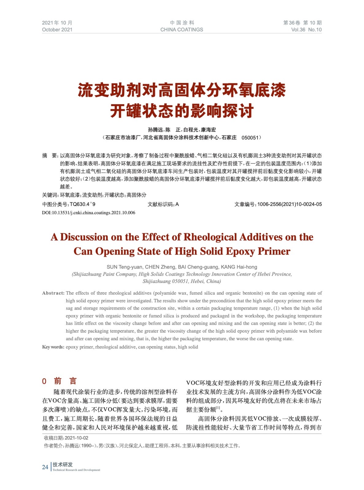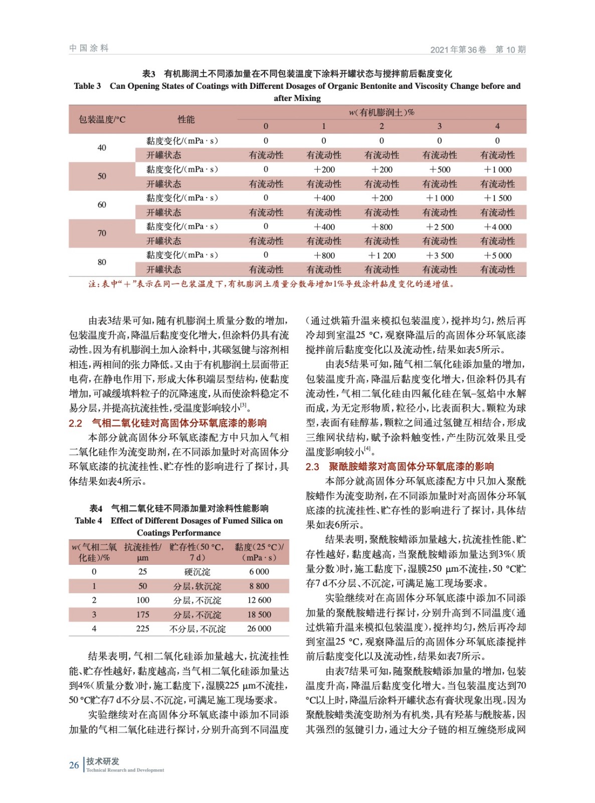 流變助劑對高固體分環氧底漆開罐狀態的影響探討