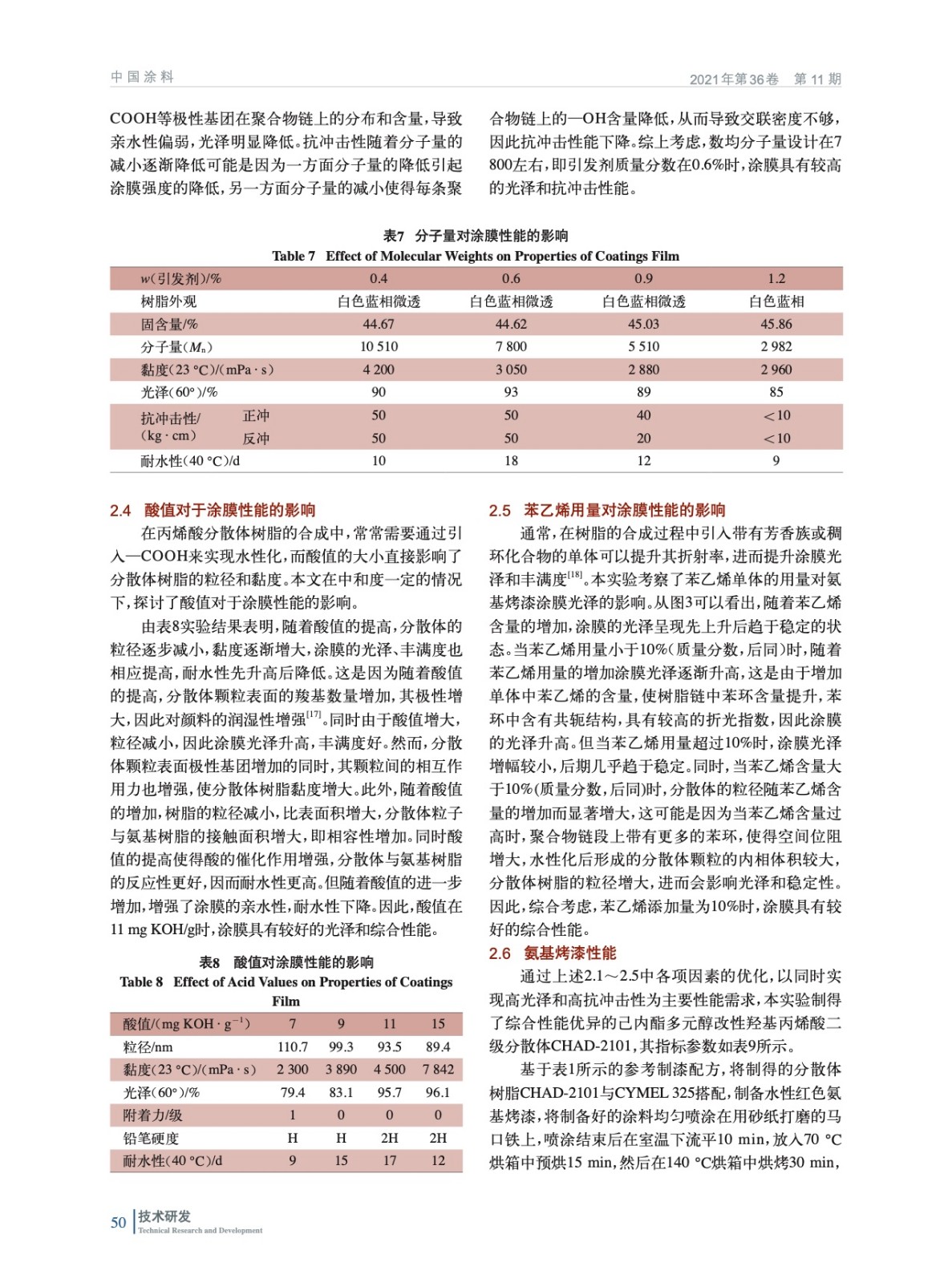 高光高抗沖擊性丙烯酸分散體的制備及其在烤漆中的應(yīng)用