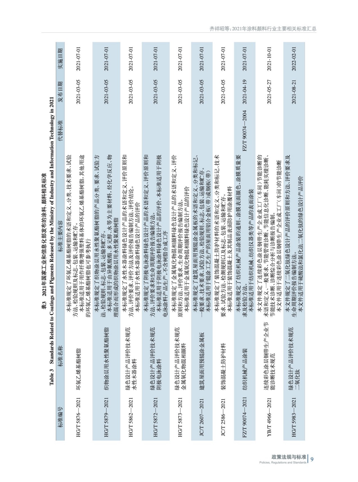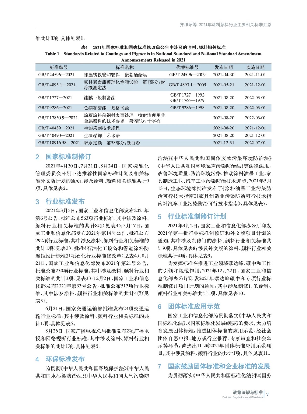 2021年涂料顏料行業主要相關標準匯總