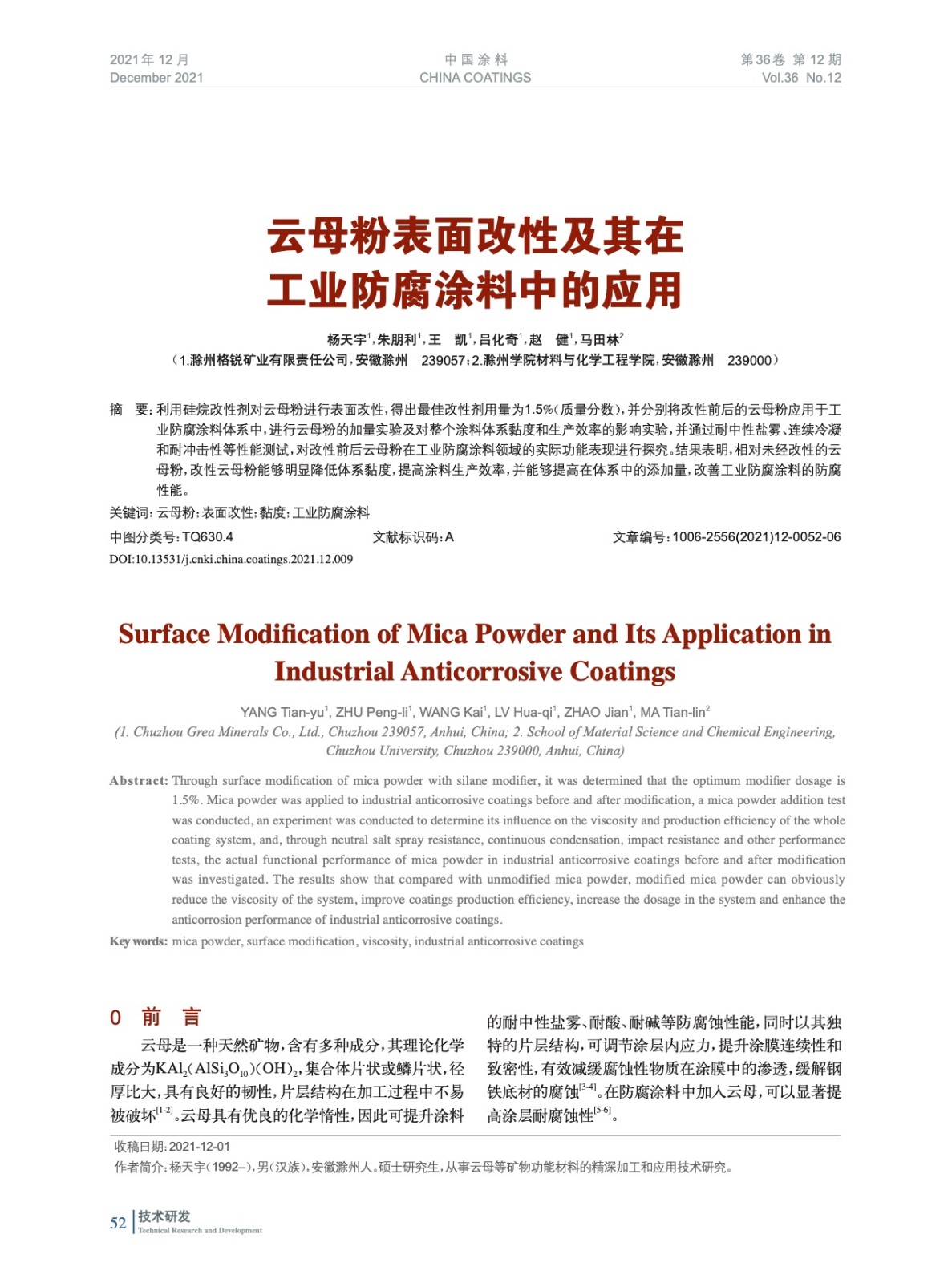 云母粉表面改性及其在工業(yè)防腐涂料中的應(yīng)用