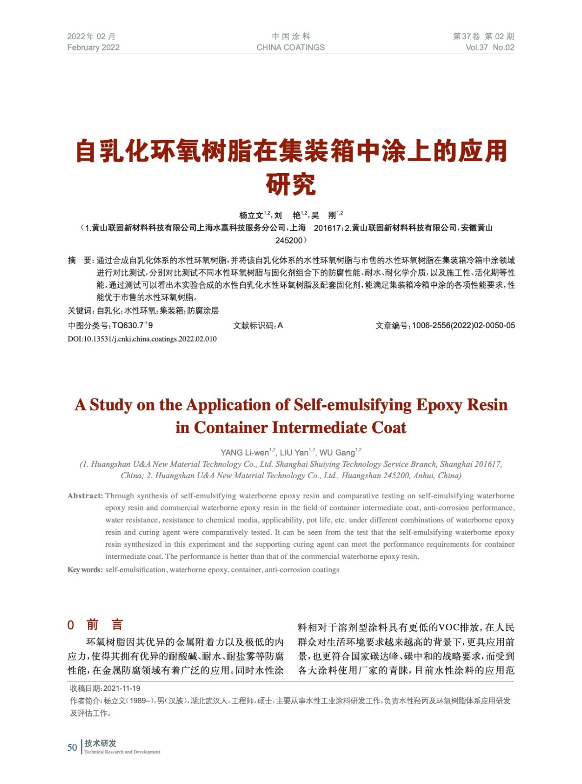 自乳化環氧樹脂在集裝箱中涂上的應用研究