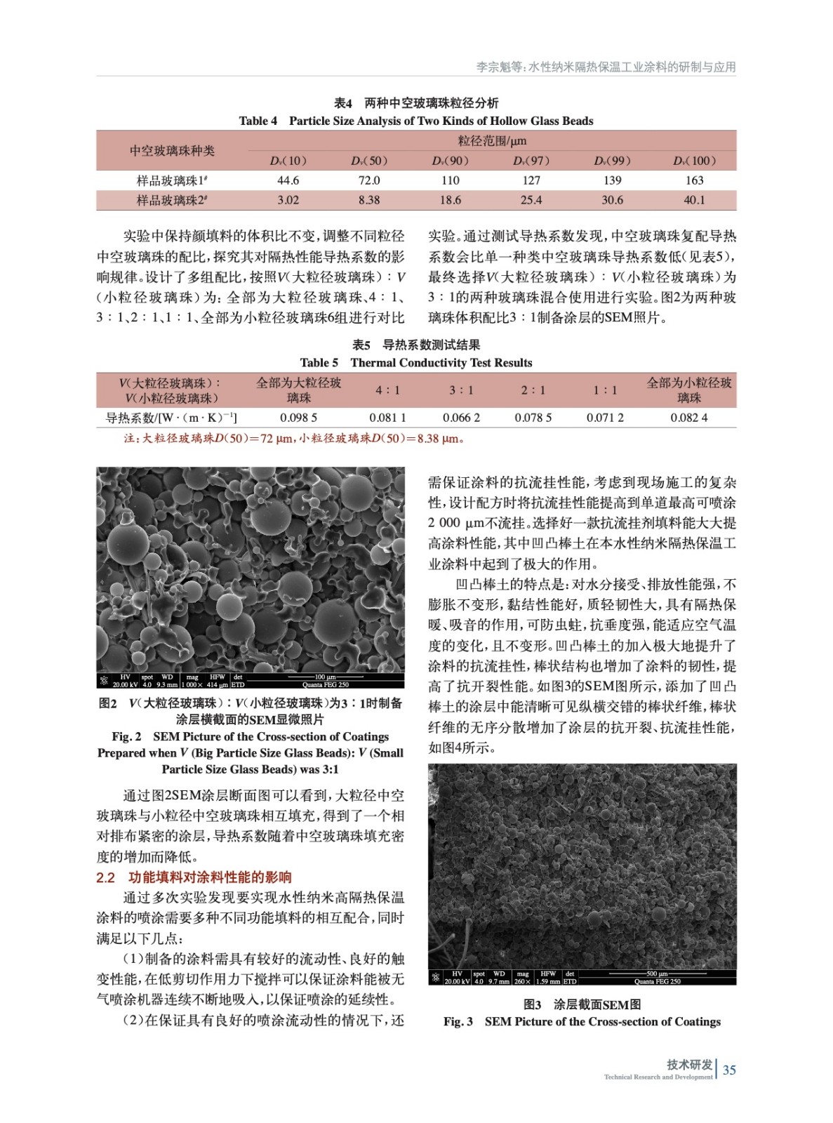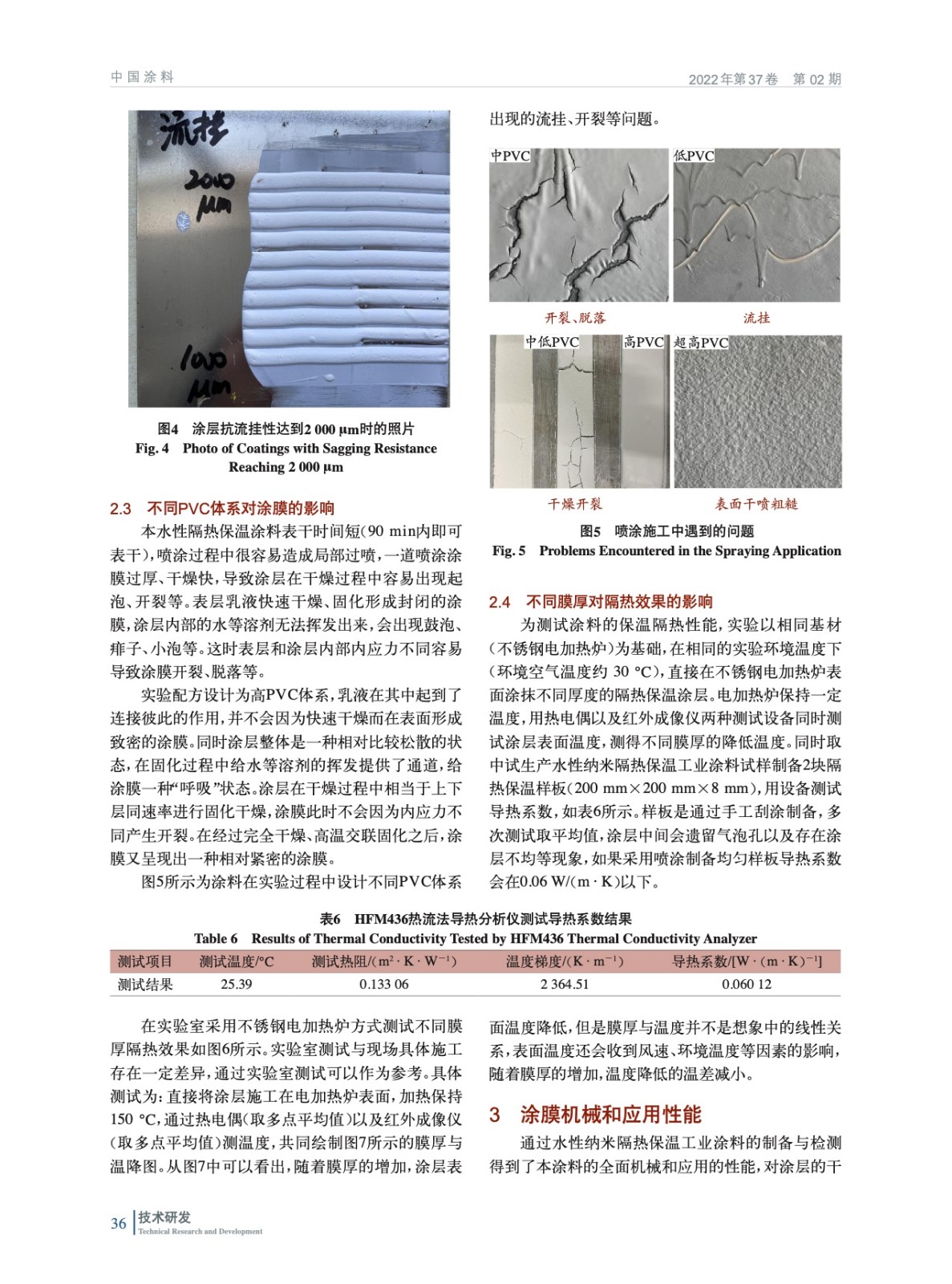 摘要:以苯丙乳液為成膜物,復配不同粒徑中空玻璃珠為主要填料,制備了一種可以長期耐受150 ℃高溫、短時間耐受180 ℃高溫的隔熱保溫涂料。性能測試結果表明,本水性隔熱保溫涂料可采用無氣噴涂、刷涂和輥涂,單道噴涂2 000 μm不流掛,干燥過程中不開裂、不起泡、不脫落,具備良好的隔熱保溫性能。