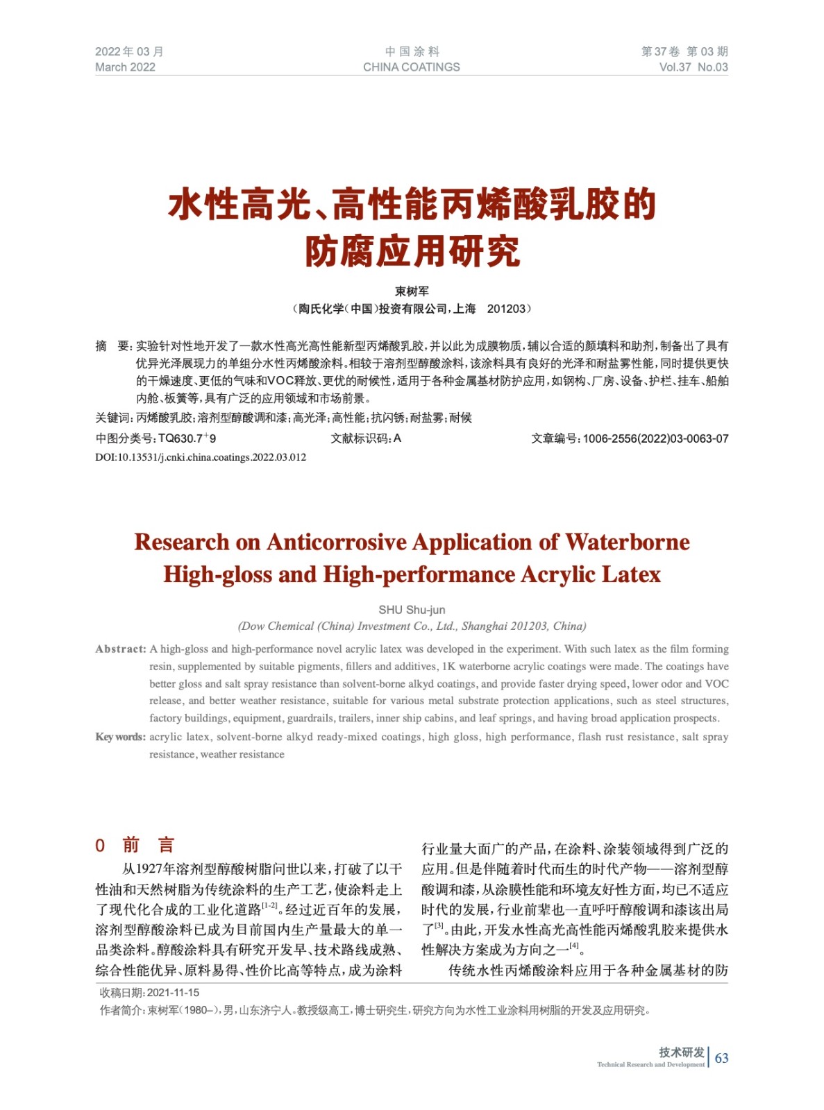 水性高光、高性能丙烯酸乳膠的防腐應(yīng)用研究