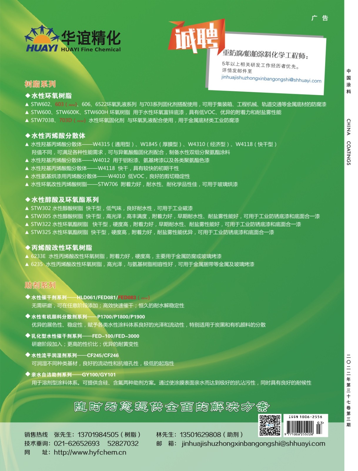 封1:朗盛特殊化學品有限公司;封2:江蘇天問新材料科技有限公司;封3:公益廣告;封4:上海華誼精細化工有限公司技術中心