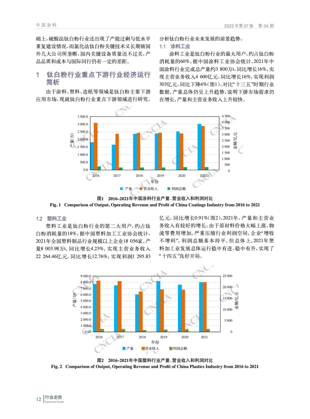 摘要:簡析了鈦白粉行業(yè)重點下游行業(yè)——涂料、塑料、造紙行業(yè)運行情況,分析了2021年中國鈦白粉行業(yè)生產(chǎn)、進(jìn)出口數(shù)據(jù),總結(jié)了行業(yè)運行特點,指出了目前中國鈦白粉行業(yè)面臨的問題,指明了行業(yè)發(fā)展趨勢,并提出有利于我國鈦白粉行業(yè)健康發(fā)展的相關(guān)政策建議。