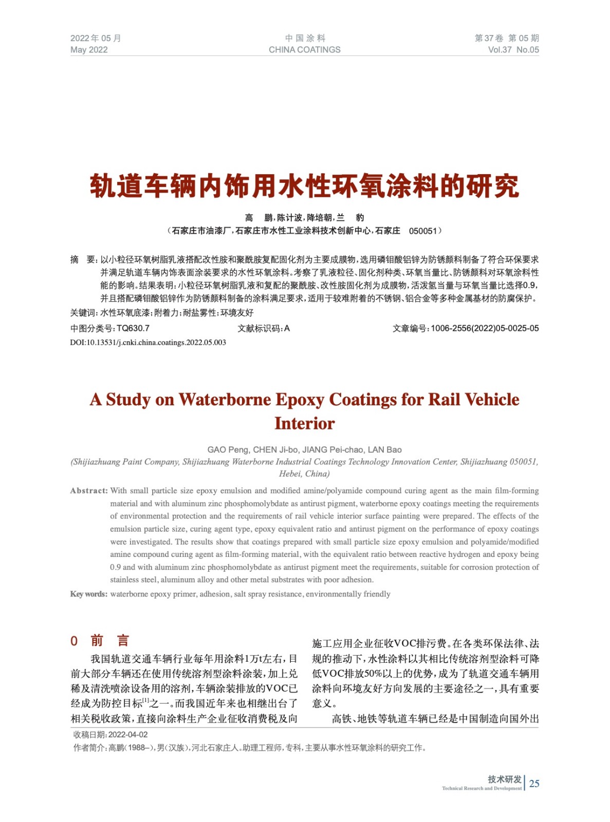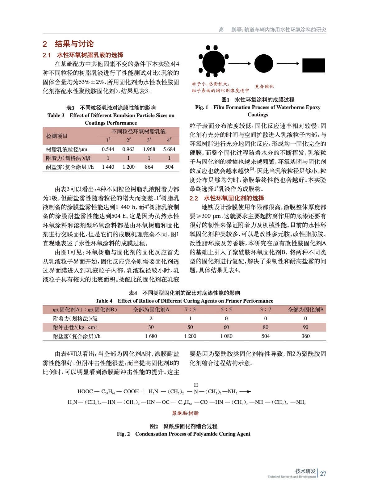 軌道車(chē)輛內(nèi)飾用水性環(huán)氧涂料的研究