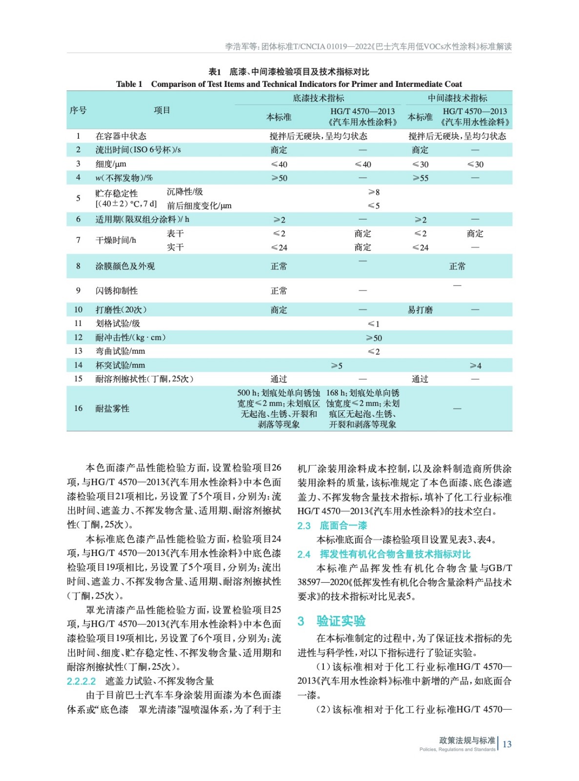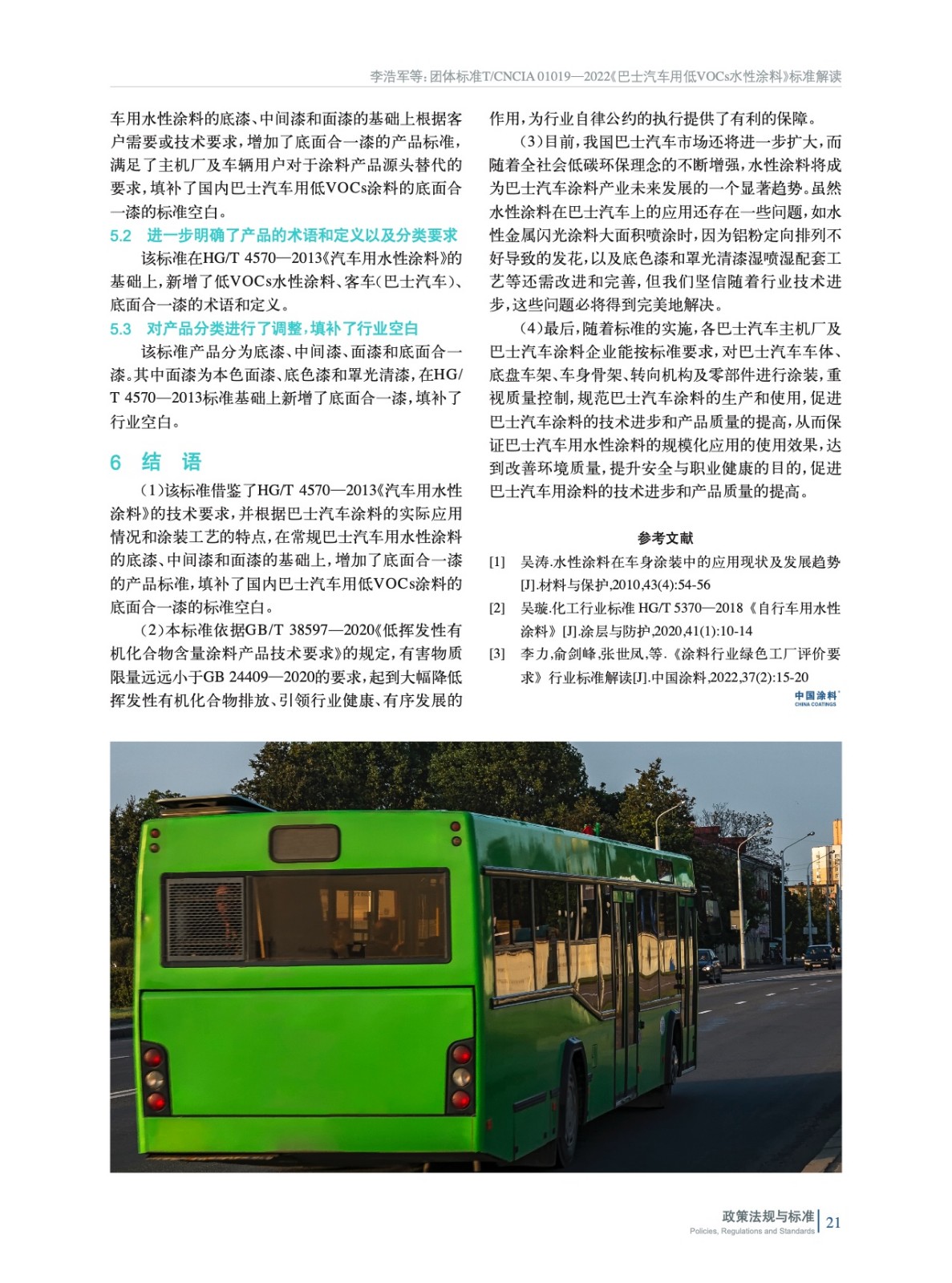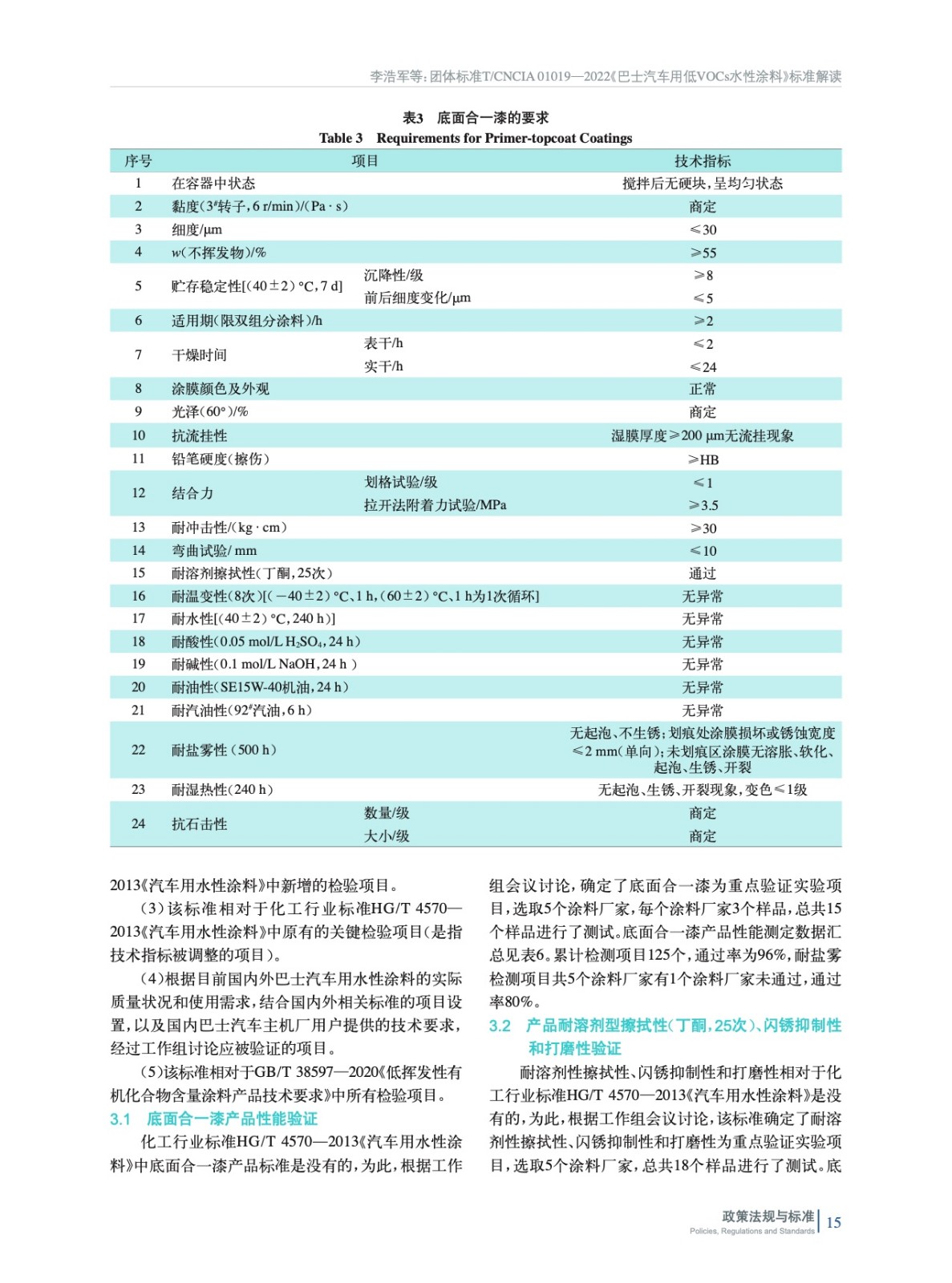團體標準T/CNCIA 01019—2022《巴士汽車用低VOCs水性涂料》 標準解讀