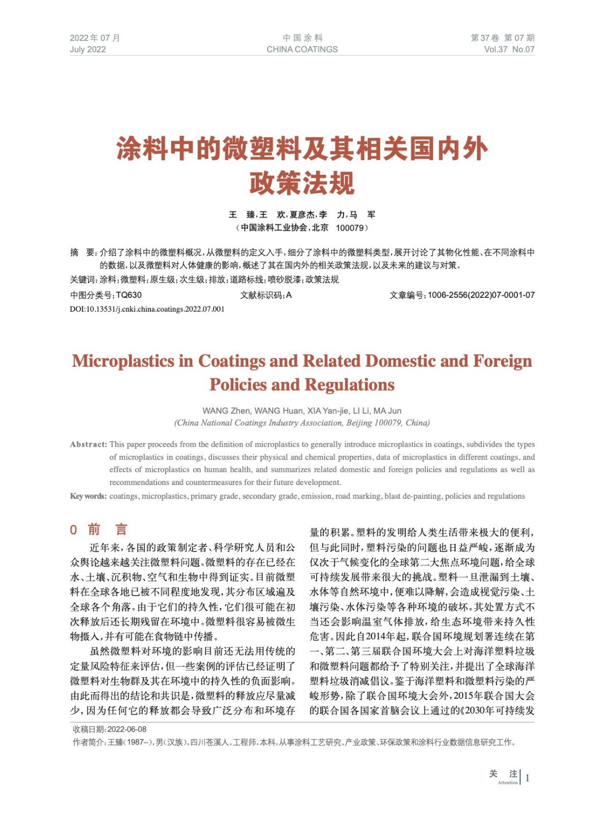 本文系作者@王 臻,王 歡,夏彥杰,李 力,馬 軍 授權(quán)中國(guó)涂料網(wǎng)發(fā)表,并經(jīng)中國(guó)涂料網(wǎng)編輯,未經(jīng)允許不得轉(zhuǎn)載,如需轉(zhuǎn)載請(qǐng)聯(lián)系chinacoatingnet@vip.163.com