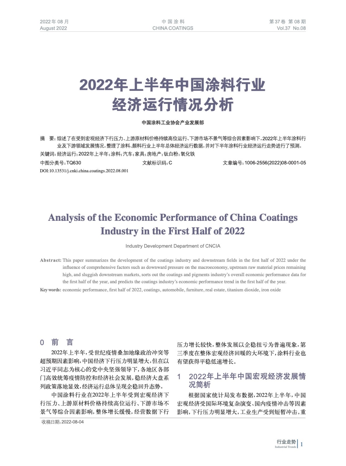 2022年上半年中國(guó)涂料行業(yè)經(jīng)濟(jì)運(yùn)行情況分析