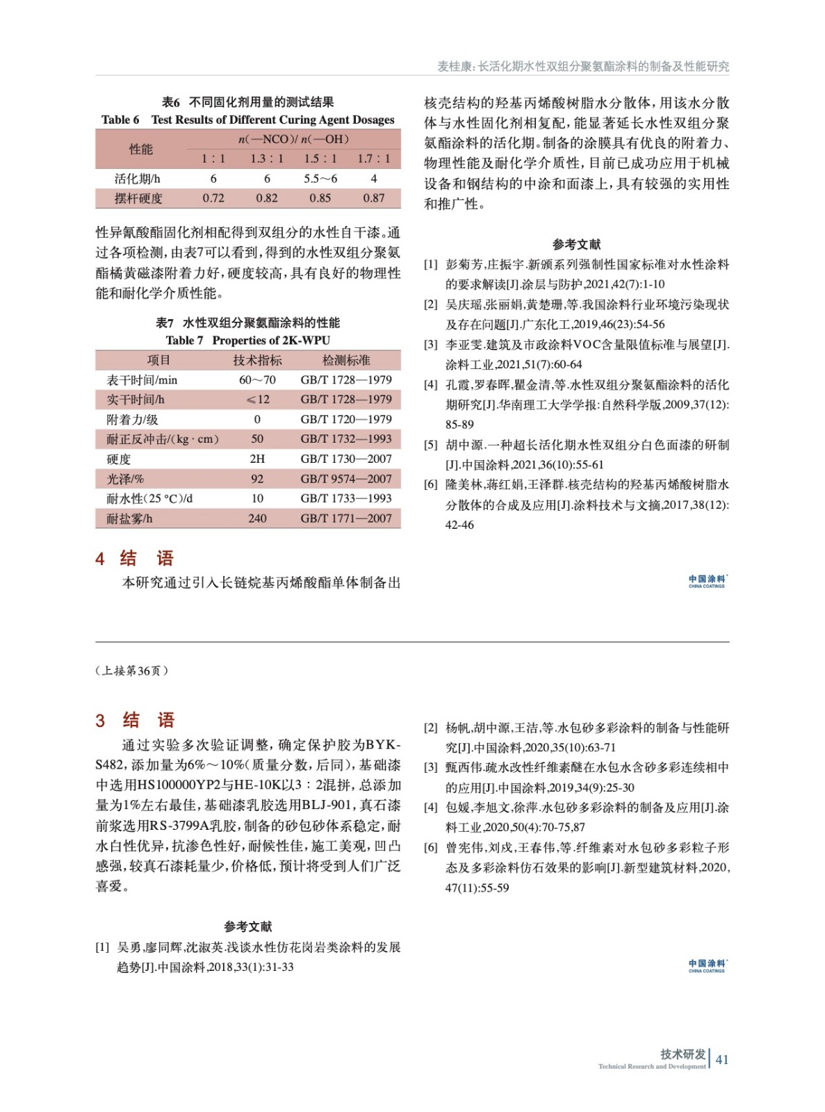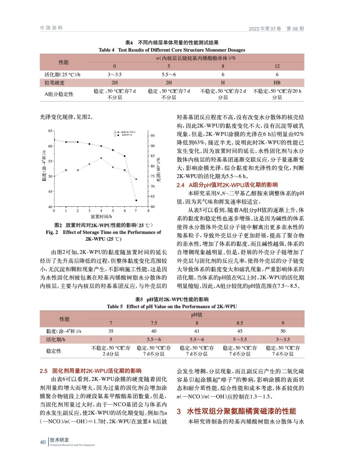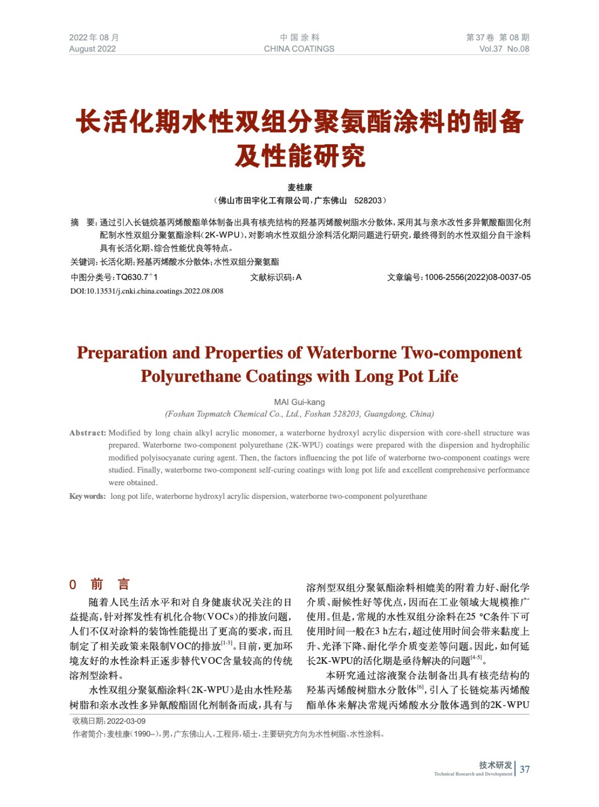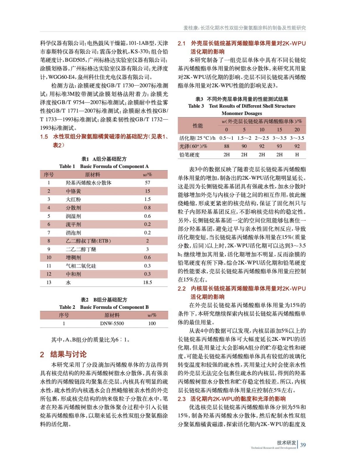 長活化期水性雙組分聚氨酯涂料的制備及性能研究