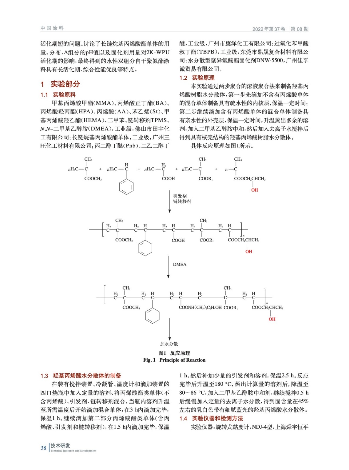 摘要:通過引入長鏈烷基丙烯酸酯單體制備出具有核殼結(jié)構(gòu)的羥基丙烯酸樹脂水分散體,采用其與親水改性多異氰酸酯固化劑配制水性雙組分聚氨酯涂料(2K-WPU),對影響水性雙組分涂料活化期問題進行研究,最終得到的水性雙組分自干涂料具有長活化期、綜合性能優(yōu)良等特點。