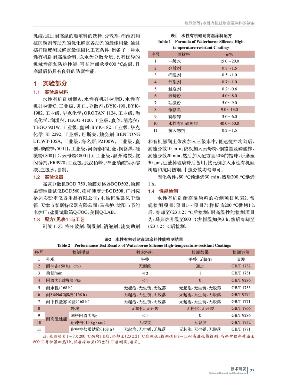 介紹了一種水性有機硅耐高溫涂料的制備方法,從樹脂、助劑、顏填料及固化條件的選擇等方面對配方進行了優化,開發出水性有機硅耐高溫涂料,可以承受600 ℃高溫,具有優異的機械性能和防腐性能。