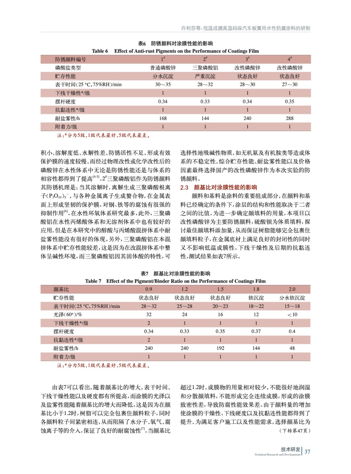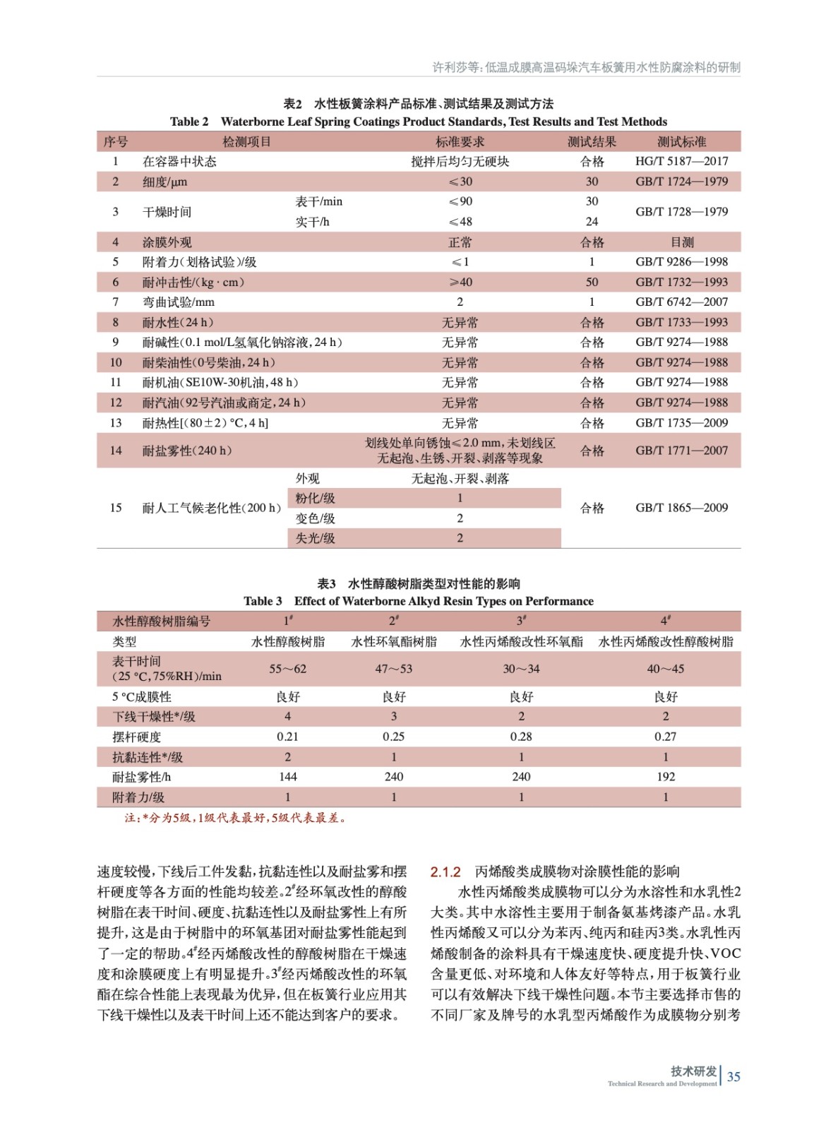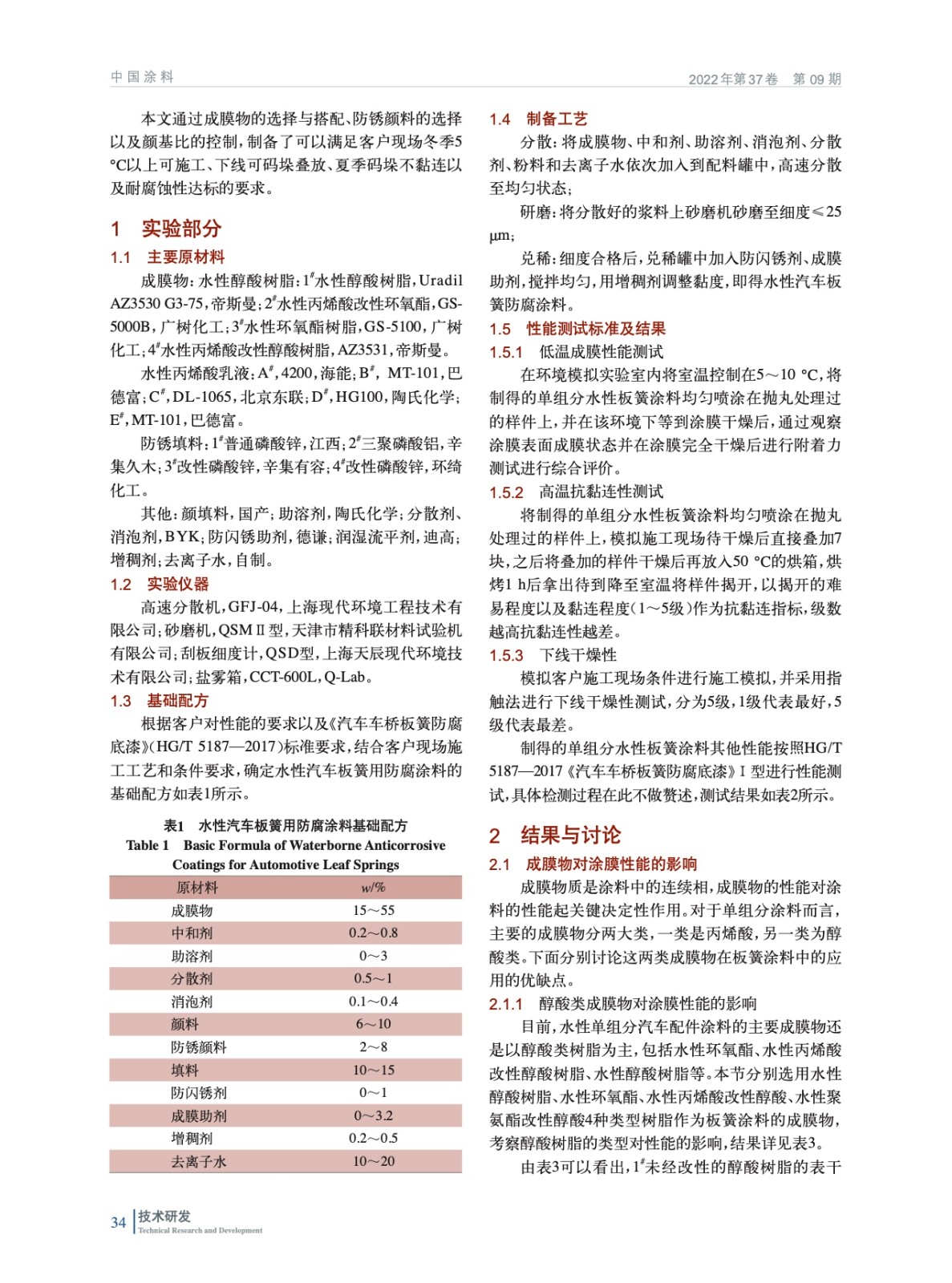 低溫成膜高溫碼垛汽車板簧用水性防腐涂料的研制