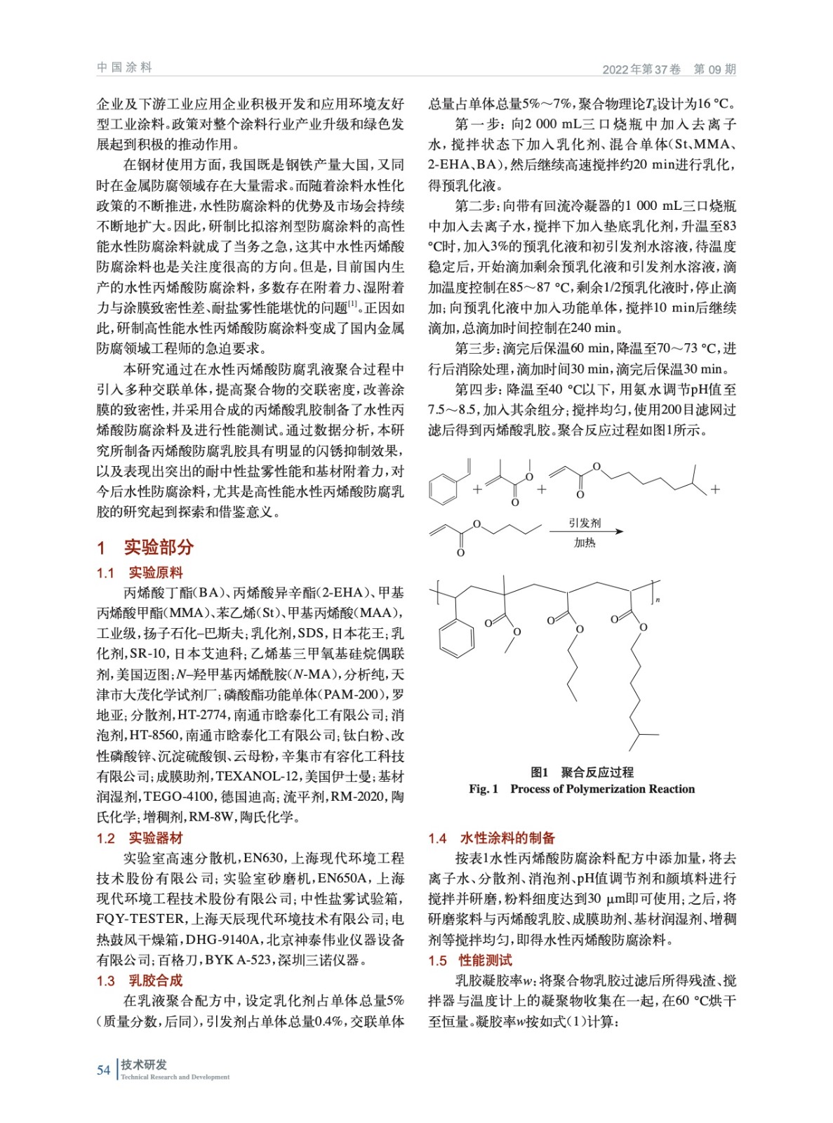 摘要:研究了N–羥甲基丙烯酰胺、甲基丙烯酸、硅烷偶聯劑以及磷酸酯功能單體4種不同交聯單體對丙烯酸乳膠的性能影響。數據表明,適量加入N-MA會提高乳膠的穩定性,過多加入則會導致乳膠凝膠量增多,同時引起乳膠膜耐水性下降;MAA質量分數為2.0%時,對提高聚合物交聯密度和涂膜硬度有作用;硅烷偶聯劑質量分數為0.3%時,且采用后加入方式有利于提高乳膠穩定性;磷酸酯功能單體對改善涂膜耐鹽霧性能效果顯著。
