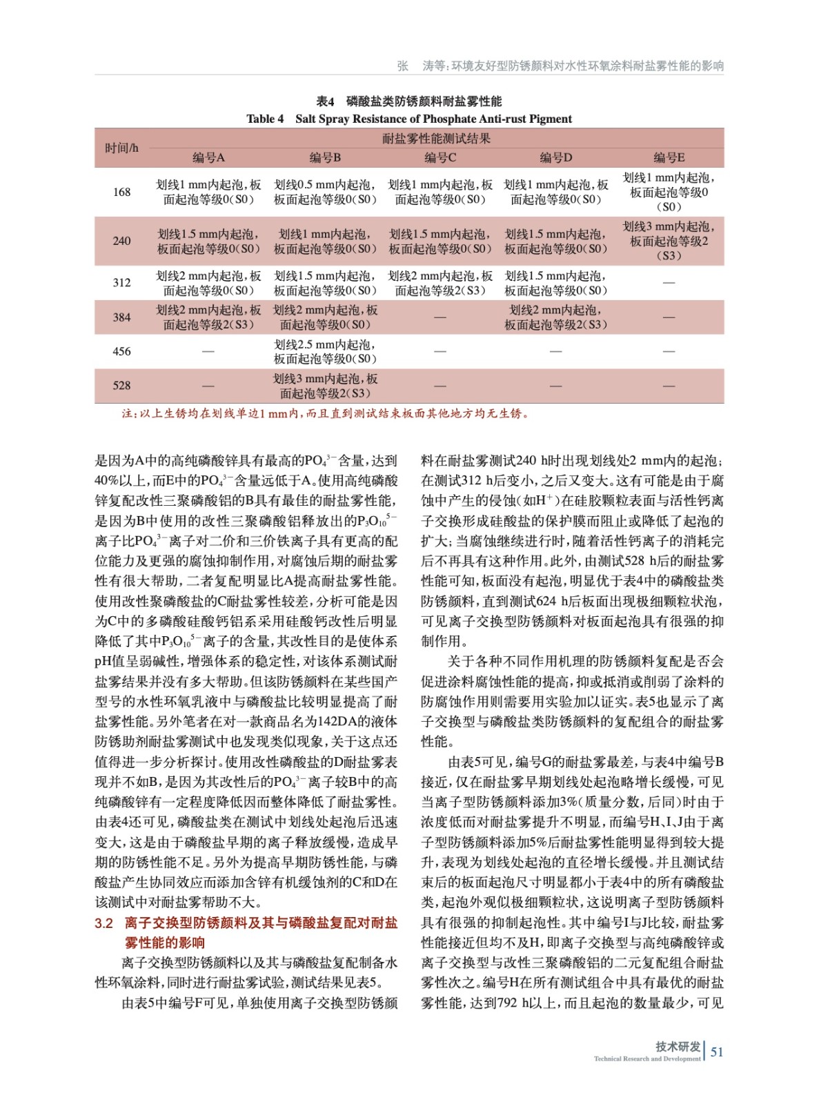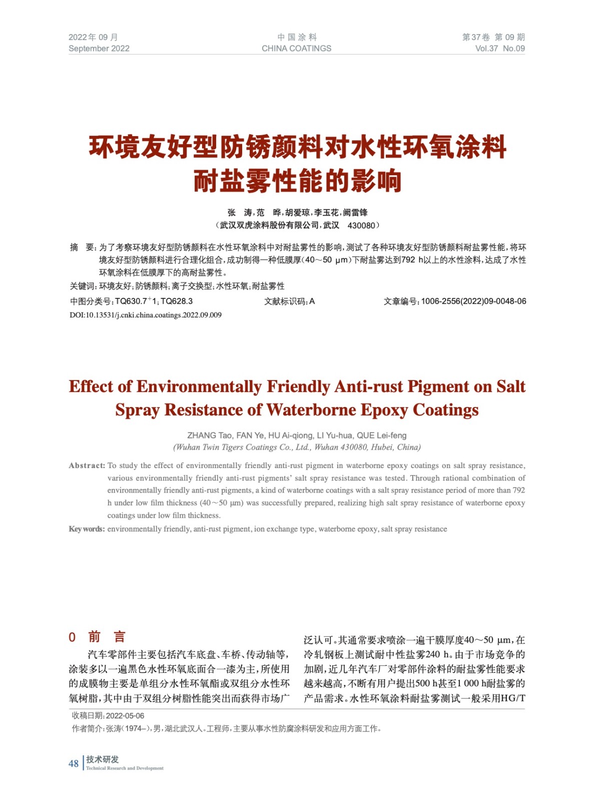環(huán)境友好型防銹顏料對(duì)水性環(huán)氧涂料耐鹽霧性能的影響