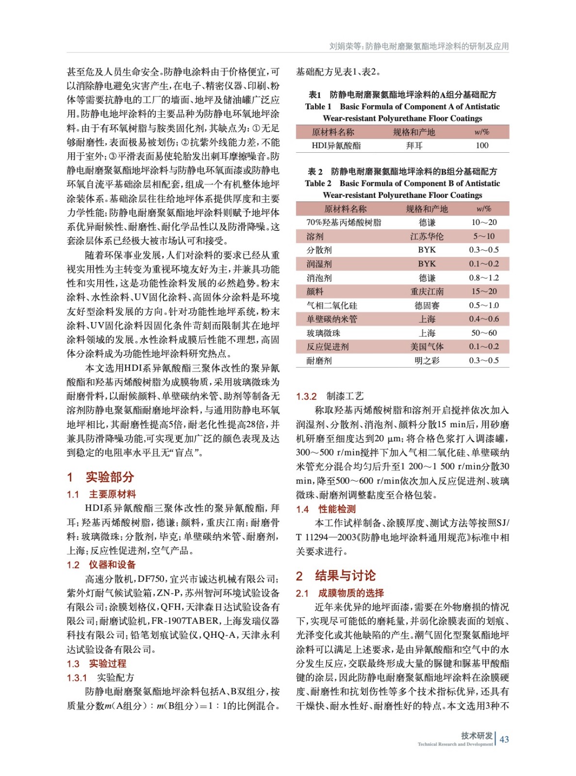 防靜電耐磨聚氨酯地坪涂料的研制及應用