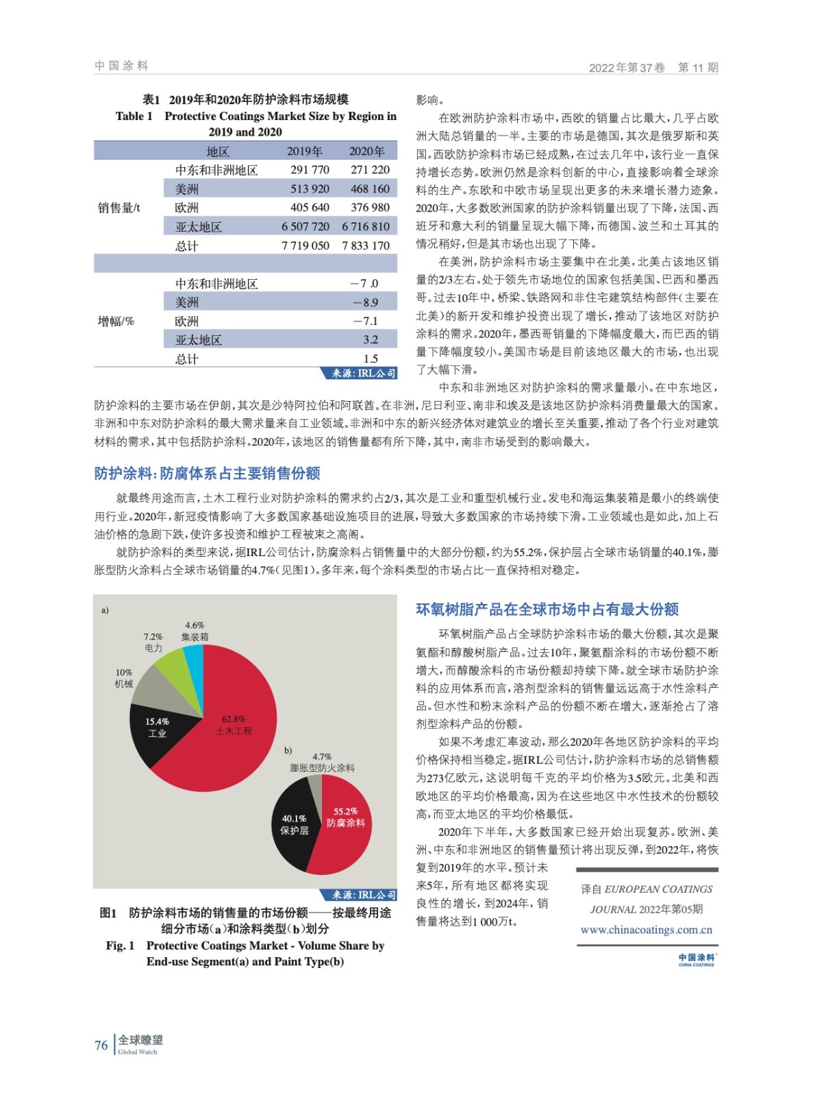 摘要:編者按:由于全球經(jīng)濟(jì)受到疫情的影響,防護(hù)涂料市場發(fā)生了巨大的變化。根據(jù)IRL公司研究,估計2020年全球防護(hù)涂料市場的規(guī)模約為780萬t,與2019年相比略有增長。
