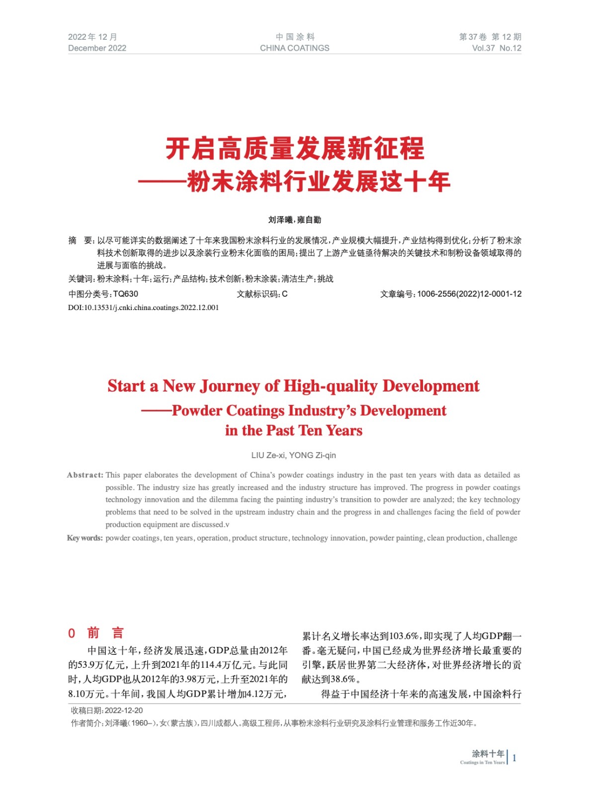 以盡可能詳實的數據闡述了十年來我國粉末涂料行業的發展情況,產業規模大幅提升,產業結構得到優化;分析了粉末涂料技術創新取得的進步以及涂裝行業粉末化面臨的困局;提出了上游產業鏈亟待解決的關鍵技術和制粉設備領域取得的進展與面臨的挑戰。