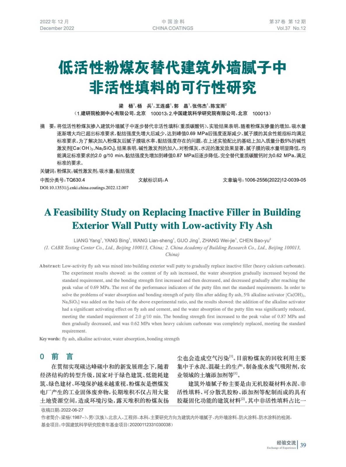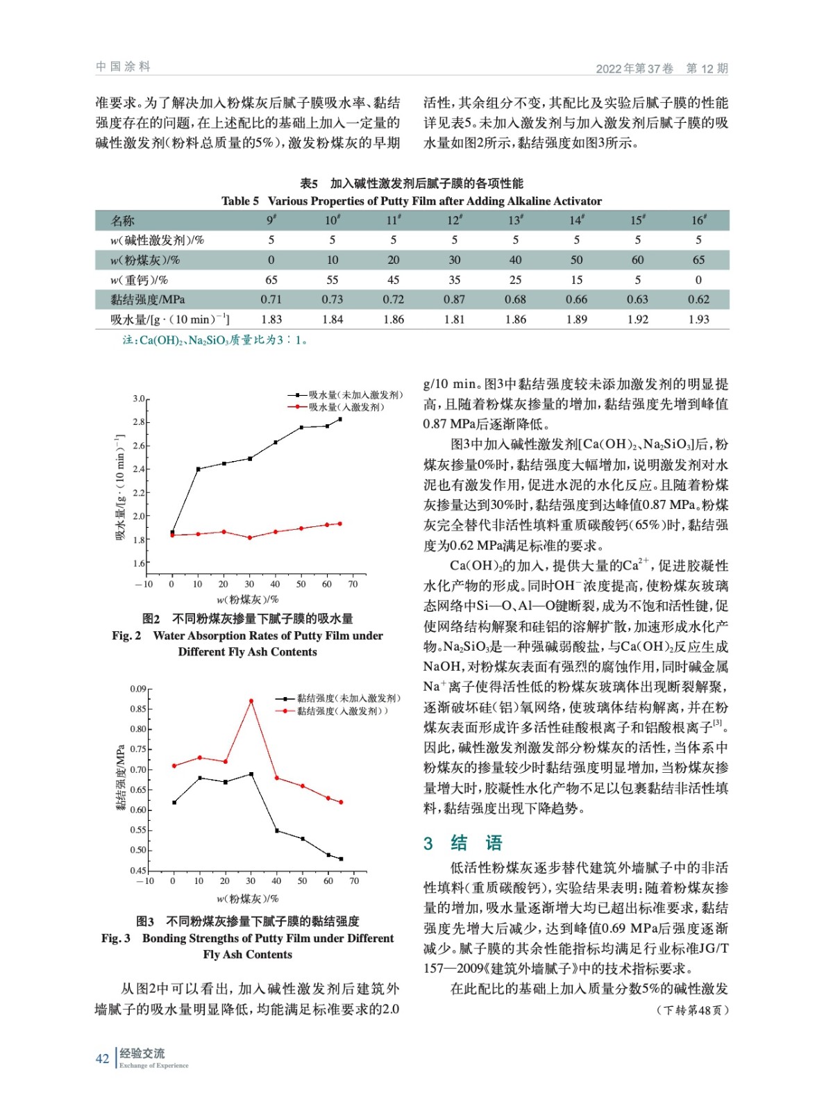 低活性粉煤灰替代建筑外墻膩子中非活性填料的可行性研究