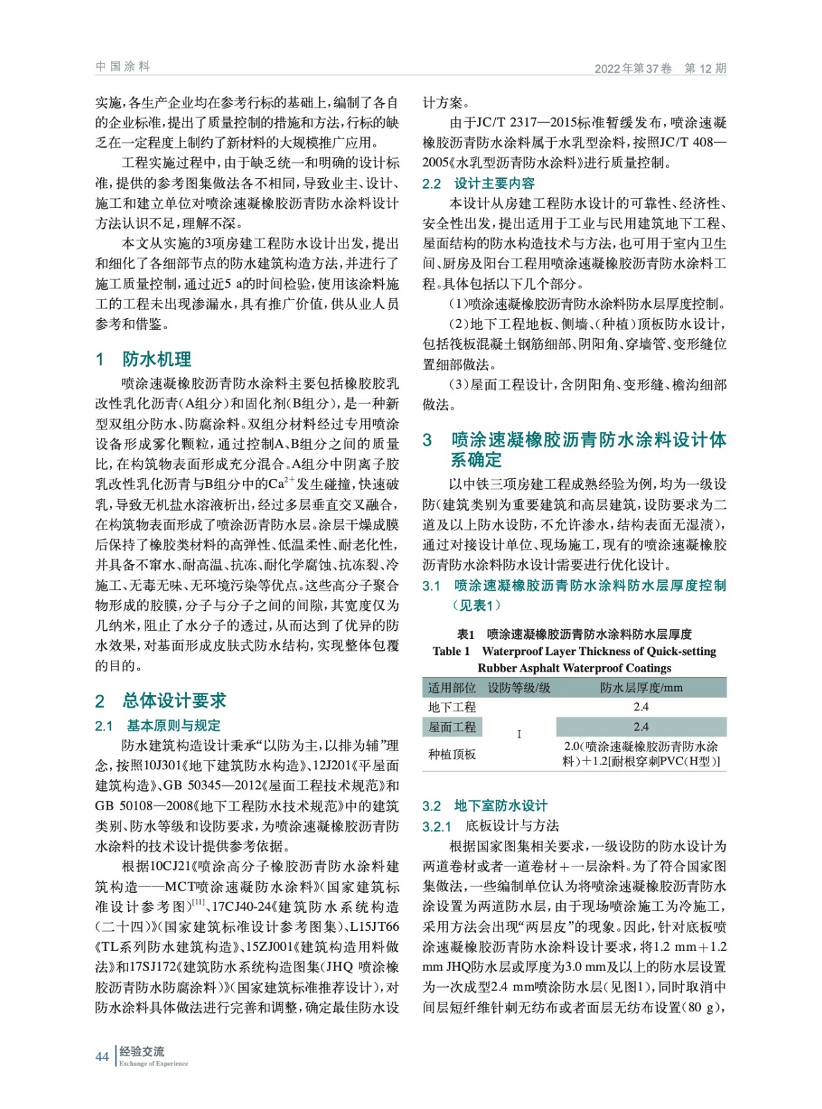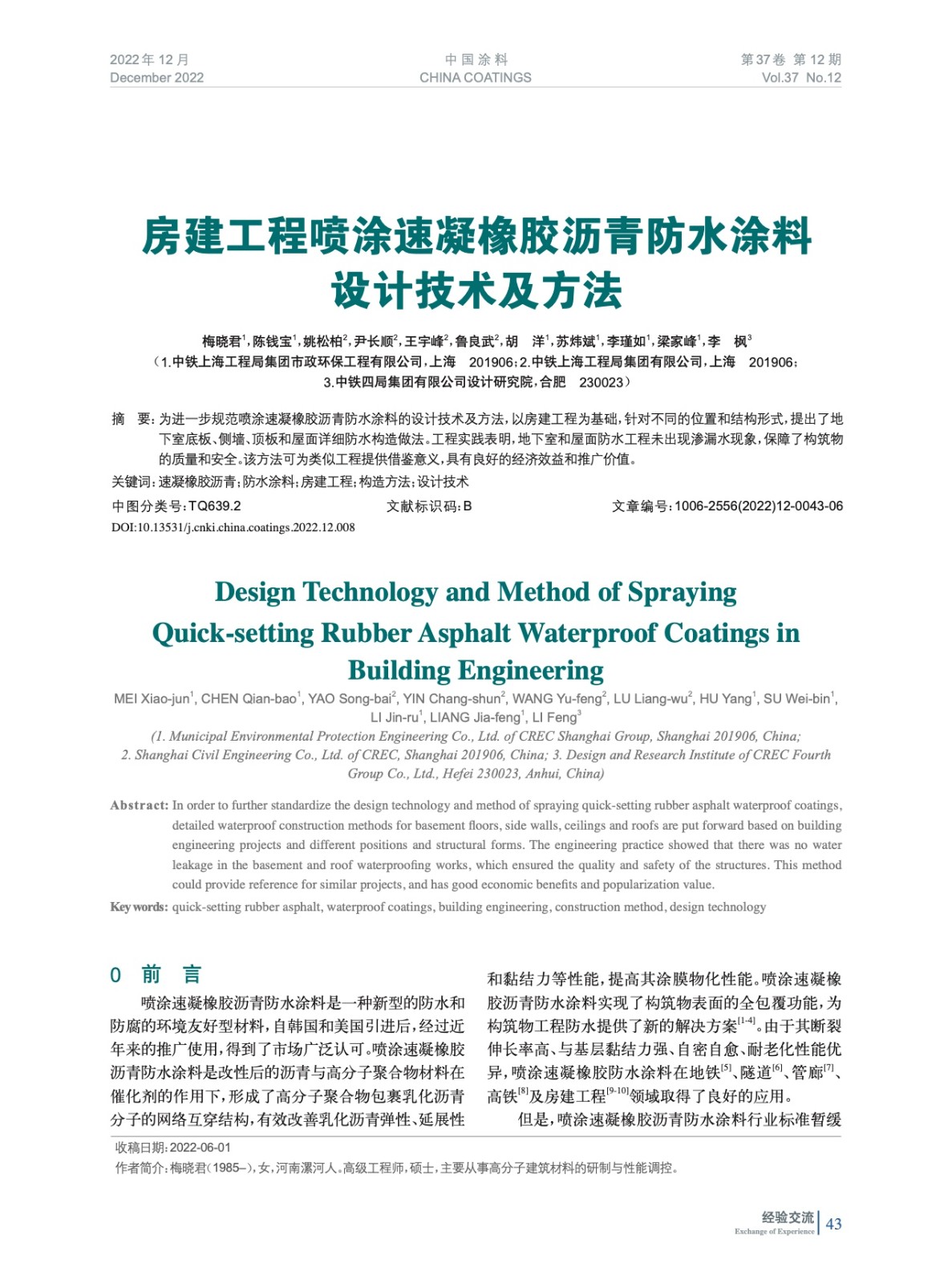 房建工程噴涂速凝橡膠瀝青防水涂料設(shè)計(jì)技術(shù)及方法