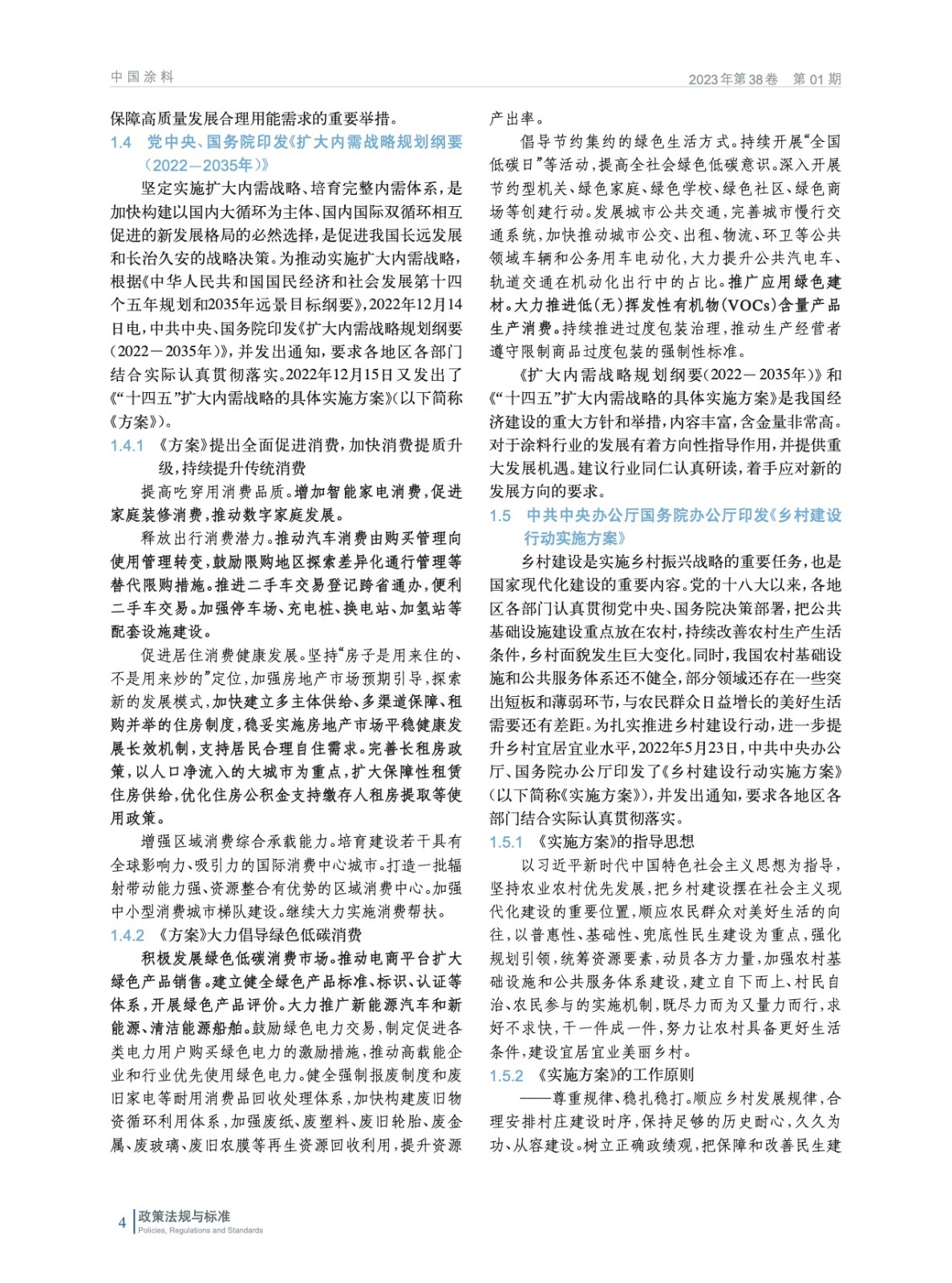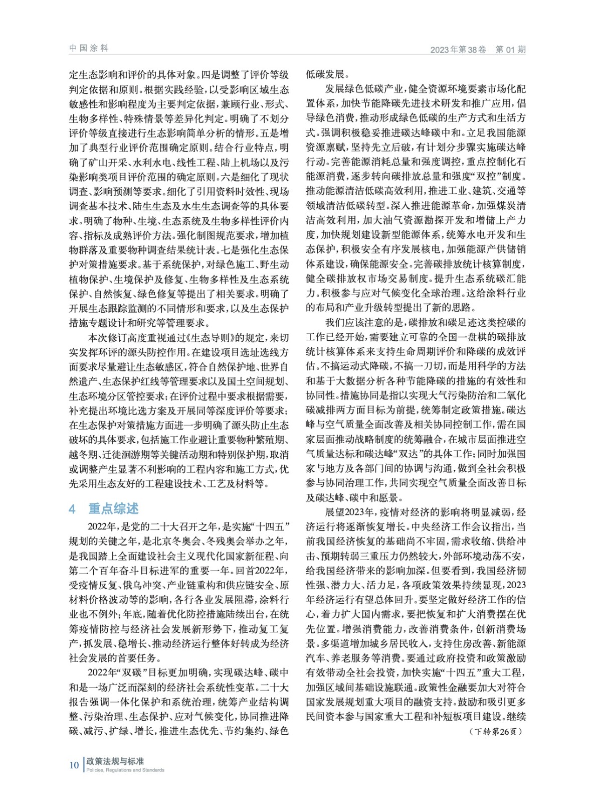摘要:編者按:剛剛過去的2022年,是黨和國家歷史上極為重要的一年。黨的二十大勝利召開,制定了當(dāng)前和今后一個時期黨和國家的大政方針,描繪了以中國式現(xiàn)代化全面推進(jìn)中華民族偉大復(fù)興的宏偉藍(lán)圖,全面建設(shè)社會主義現(xiàn)代化國家新征程邁出堅實步伐。在百年變局和世紀(jì)疫情相互疊加的復(fù)雜局面下,面對超預(yù)期因素的沖擊,面對諸多困難挑戰(zhàn),全年經(jīng)濟(jì)保持穩(wěn)中向好,就業(yè)總體穩(wěn)定,物價平穩(wěn),國際收支狀況較好。我們能夠取得這樣的成績,殊為不易,值得倍加珍惜!中國涂料工業(yè)協(xié)會政策法規(guī)工作委員會將2022年國家和地方出臺的與涂料和涂裝相關(guān)的政策法規(guī)進(jìn)行了梳理和匯總,將政策中與涂料工業(yè)相關(guān)的內(nèi)容原文摘錄,并由行業(yè)內(nèi)的專家進(jìn)行了解讀,以便于行業(yè)同仁及時掌握政策動態(tài)和要點,更好地推動涂料及涂裝行業(yè)的健康發(fā)展。