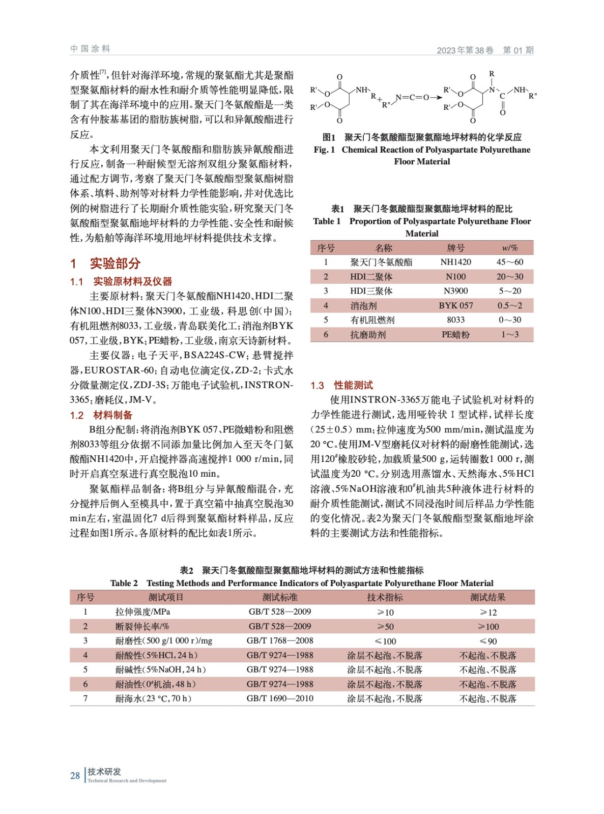 高耐介質聚天門冬氨酸酯型聚氨酯地坪涂料制備及其力學性能評價