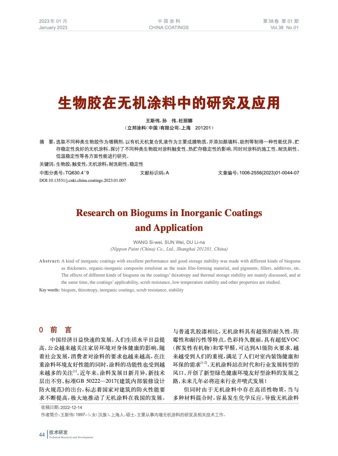 生物膠在無(wú)機(jī)涂料中的研究及應(yīng)用
