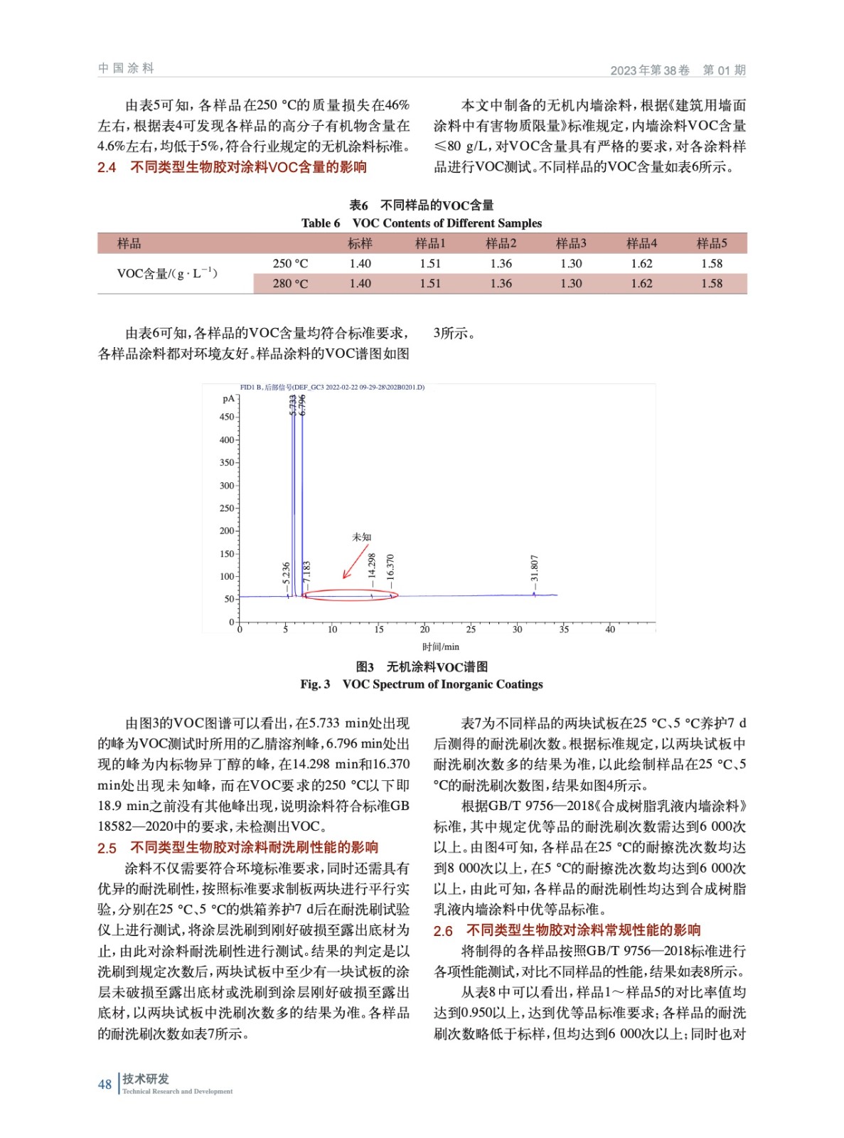 摘要:選取不同種類生物膠作為增稠劑,以有機(jī)無(wú)機(jī)復(fù)合乳液作為主要成膜物質(zhì),并添加顏填料、助劑等制得一種性能優(yōu)異、貯存穩(wěn)定性良好的無(wú)機(jī)涂料。探討了不同種類生物膠對(duì)涂料觸變性、熱貯存穩(wěn)定性的影響,同時(shí)對(duì)涂料的施工性、耐洗刷性、低溫穩(wěn)定性等各方面性能進(jìn)行研究。