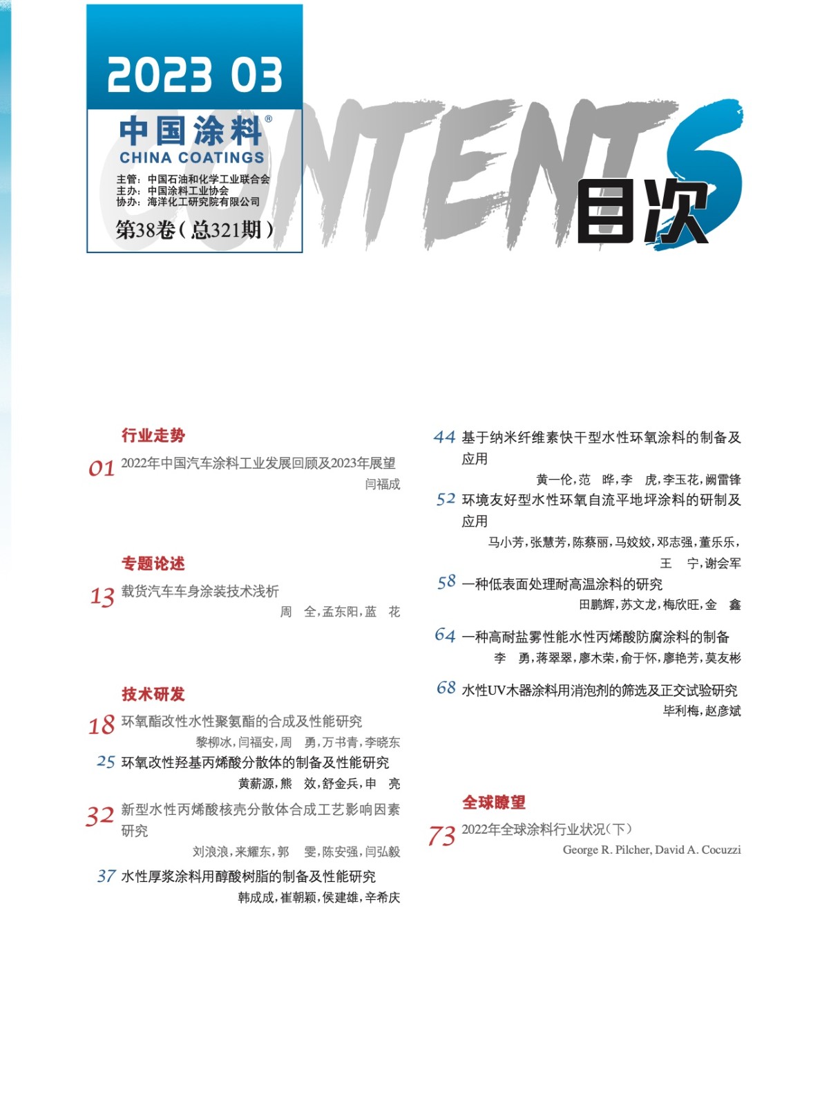 《中國涂料》第202303期 目次